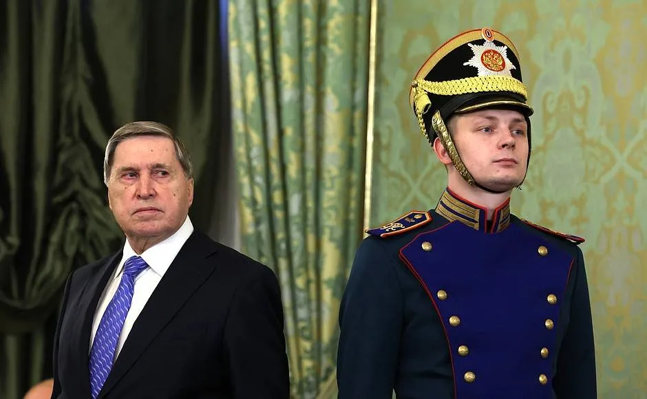 يوري أوشاكوف (يسار) خلال حضوره فعالية في الكرملين (د.ب.أ)