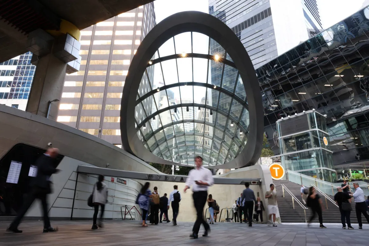أشخاص يمرون أمام محطة قطار في سيدني بأستراليا (رويترز)