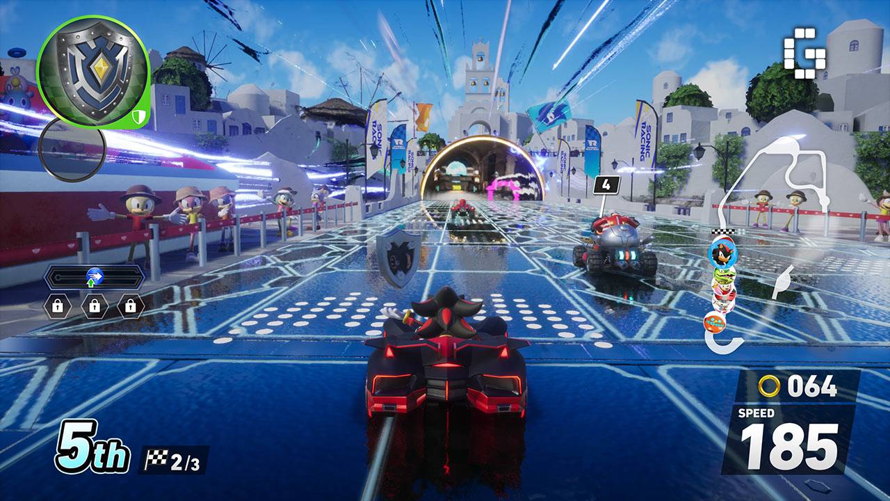 * جمالية حلبات السباق وتفاصيل المخاطر: الحلبات في اللعبة مذهلة بصرياً ومليئة بالألوان والجاذبية، وكلها متغيرة بشكل كبير مما يجعلها تبدو كعوالم حية. ويوازن تصميم الحلبات بين المخاطر والمكافآت؛ فبعض الطرق الفرعية تحتوي على عدد أكبر من الخواتم للوصول إلى السرعة القصوى، بينما يوفر البعض الآخر مزيداً من منصات التسارع للحصول على دفعة فورية ولمدة محدودة. وتتطلب بعض أجزاء الحلبة حفظاً وتكيفاً مع البيئة، مثل مضمار Pumpkin Mansion الذي يختفي فجأة ويكشف عن منعطفات حادة، مما يبرز أهمية إتقان كل تفصيل في الحلبة.