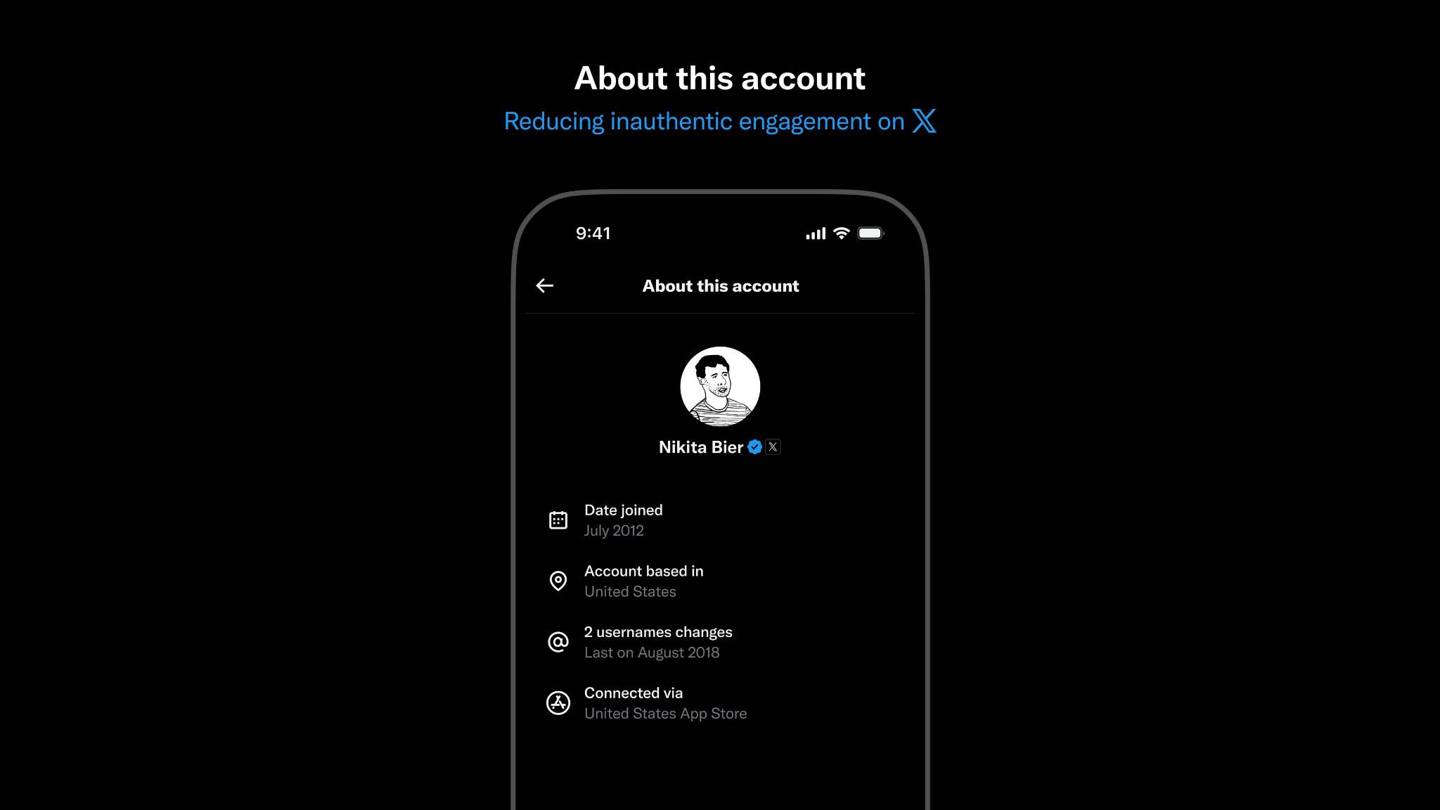 في خطوة جديدة نحو تعزيز الثقة والمصداقية، أعلنت منصة «إكس» (تويتر سابقاً) عن بدء اختبار ميزة جديدة تحت اسم «About this account» (حول هذا الحساب)، تتيح للمستخدمين معرفة معلومات تفصيلية عن الحسابات، بما في ذلك تاريخ إنشاء الحساب، والدولة التي يستند إليها الحساب، والمتجر الذي تم إنشاء الحساب من خلاله مثل «متجر تطبيقات أبل-الولايات المتحدة» (United States App Store) وعدد تغييرات اسم المستخدم السابقة وتاريخ آخر تعديل.