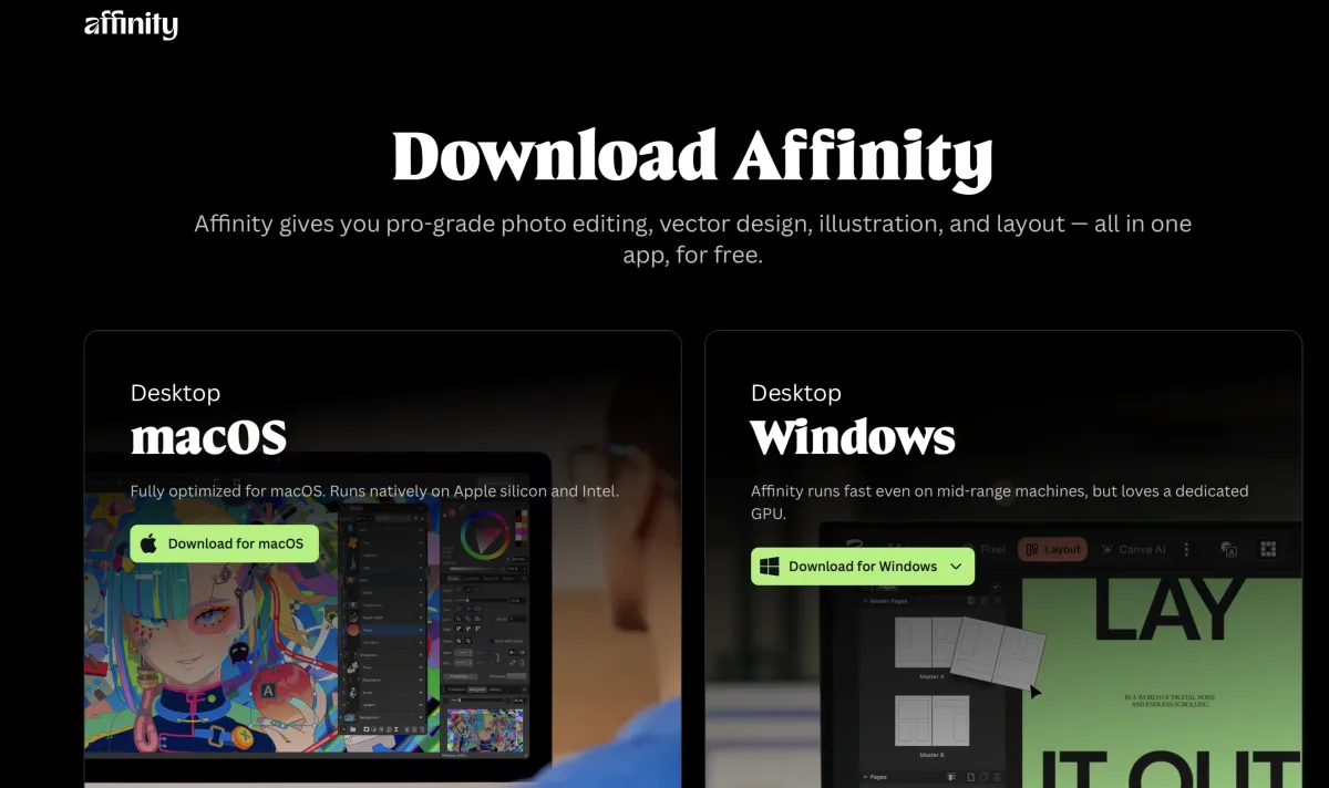 بعكس برامج «أدوبي» التي تعتمد على نموذج اشتراك شهري دائم عبر خدمة «كريتيف كلاود»، قرّرت «كانفا» اتباع نهج مختلف مع تطبيق «أفينيتي»، معلنةً أنه سيكون مجانياً بشكل دائم، مع إمكانية الحصول على مزايا احترافية إضافية ضمن باقة «برو» المتكاملة مع خدمات «كانفا» وأدوات الذكاء الاصطناعي.