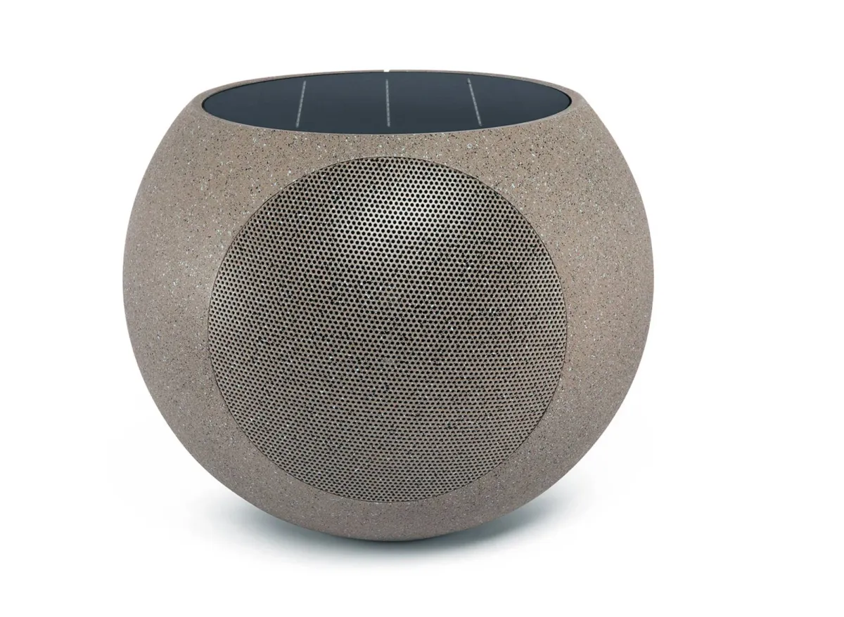 تتميز السماعة «Victrola Zen wireless outdoor Bluetooth solar speaker» بتصميم دائري الشكل إلى حد ما، ولون أقرب إلى لون الحجر، ومقاساتها 12.71 × 12.76 × 10.63 بوصة. وجرى تصميمها على نحو يمكِّنها من الاندماج مع البيئة الخارجية بشكل سلس وطبيعي. ويسهم الجزء السفلي المسطح في ثباتها، في حين يضمن لوح الطاقة الشمسية الموجود بالجزء العلوي استمرار تدفق الطاقة إليها. وكل هذا مصمَّم داخل بدن بمواصفات «آي بي 65» لمقاومة تقلبات الطقس.