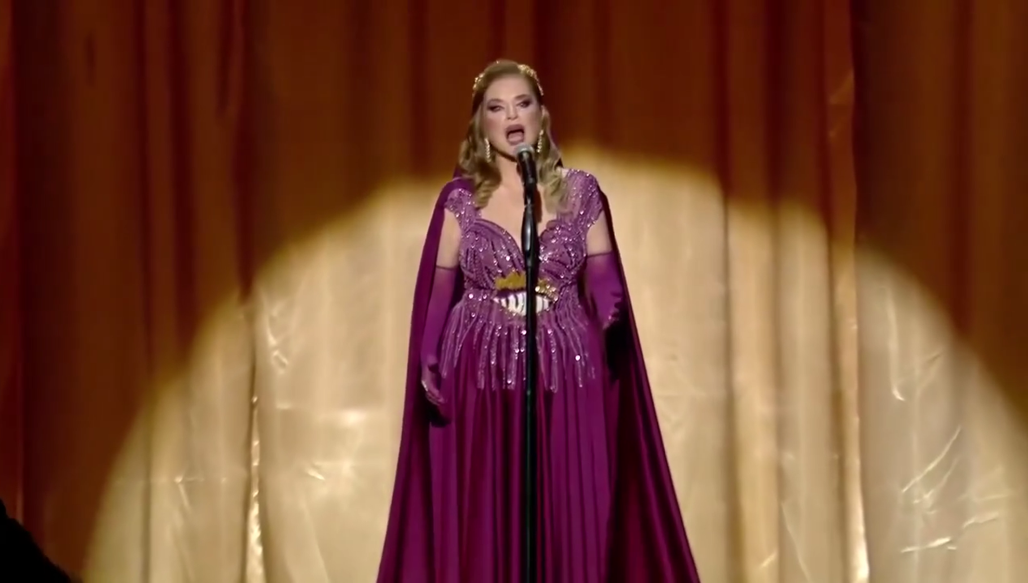 خلال غنائها نشيد جائزة الـ{موركس دور} في مناسبة يوبيلها الفضي (رونزا)