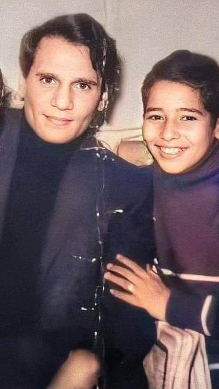 يحيى الموجي في طفولته مع الفنان الراحل عبد الحليم حافظ (الشرق الأوسط)
