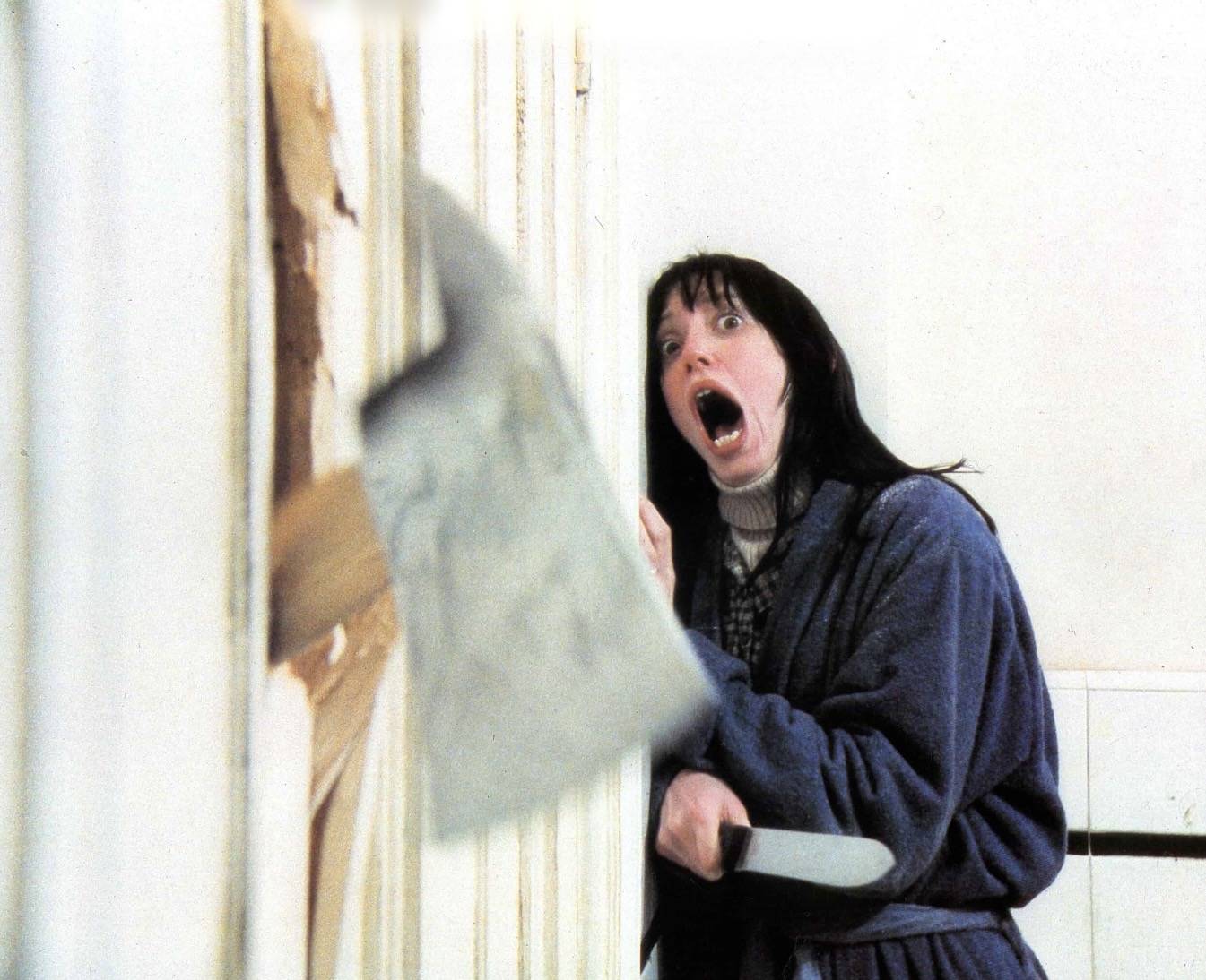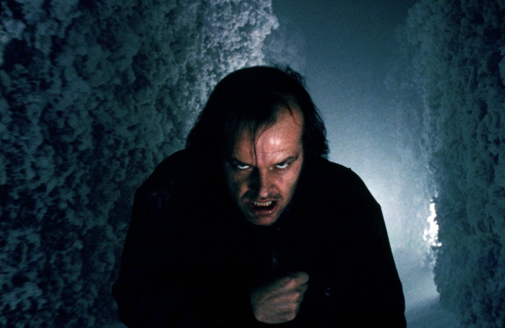 لقطة من الفيلم تحوّلت إلى أيقونة في سينما الرعب يُخرج فيها الممثل جاك نيكلسون رأسه من الباب المكسور (المصدر: IMDb)
