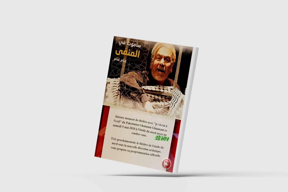 ومن تلك العروض التي توقفت عندها المؤلفة بالكثير من التأمل «سأموت في المنفى» للفنان الفلسطيني غنام غنام الذي يستعرض الهم الإنساني للفلسطينيين ببراعة، وبشكل غير تقليدي، فهو ليس فقط الممثل أو الراوي الوحيد الماثل أمامنا، بل هو كل عناصر المسرحية: الكاتب ومصمم السينوغرافيا والمطرب والمخرج، إنها روايته الشخصية عن حياته كمواطن فلسطيني.