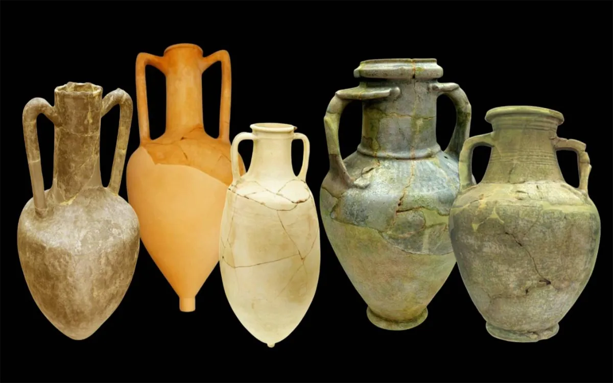 تعود هذه المجموعة الخزفية المزجّجة إلى حقبة تمتد من القرن الثاني قبل الميلاد إلى القرن الميلادي الأوّل، وتشهد للرباط الذي يجمع بين مليحة وبلاد الرافدين. وتقابلها مجموعة أخرى من ميراث مليحة، تشهد لصلة أخرى مغايرة تجمع بينها وبين العالَم المتوسّطي الإغريقي، وتتمثّل هذه المجموعة بقطع فخارية من الطراز الذي يُعرف بـ«الأمفورة»؛ منها 3 قطع وصلت بشكل شبه كامل. كما هو معروف، ترتبط «الأمفورة» بشكل وثيق بالعالم الإغريقي، وتشكّل صناعة خزفية تقليدية شاعت في ذاك العالم بشكل واسع، وهي على شكل قارورة بيضاوية طويلة، تحدّها قبضتان كبيرتان تتصلان بعنق طويل ونحيل.