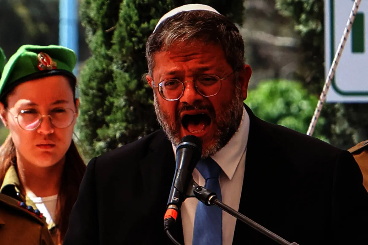 وزير الأمن القومي الإسرائيلي اليميني المتطرف إيتمار بن غفير يتحدث مؤخراً في المقبرة العسكرية ببئر السبع (أ.ف.ب)