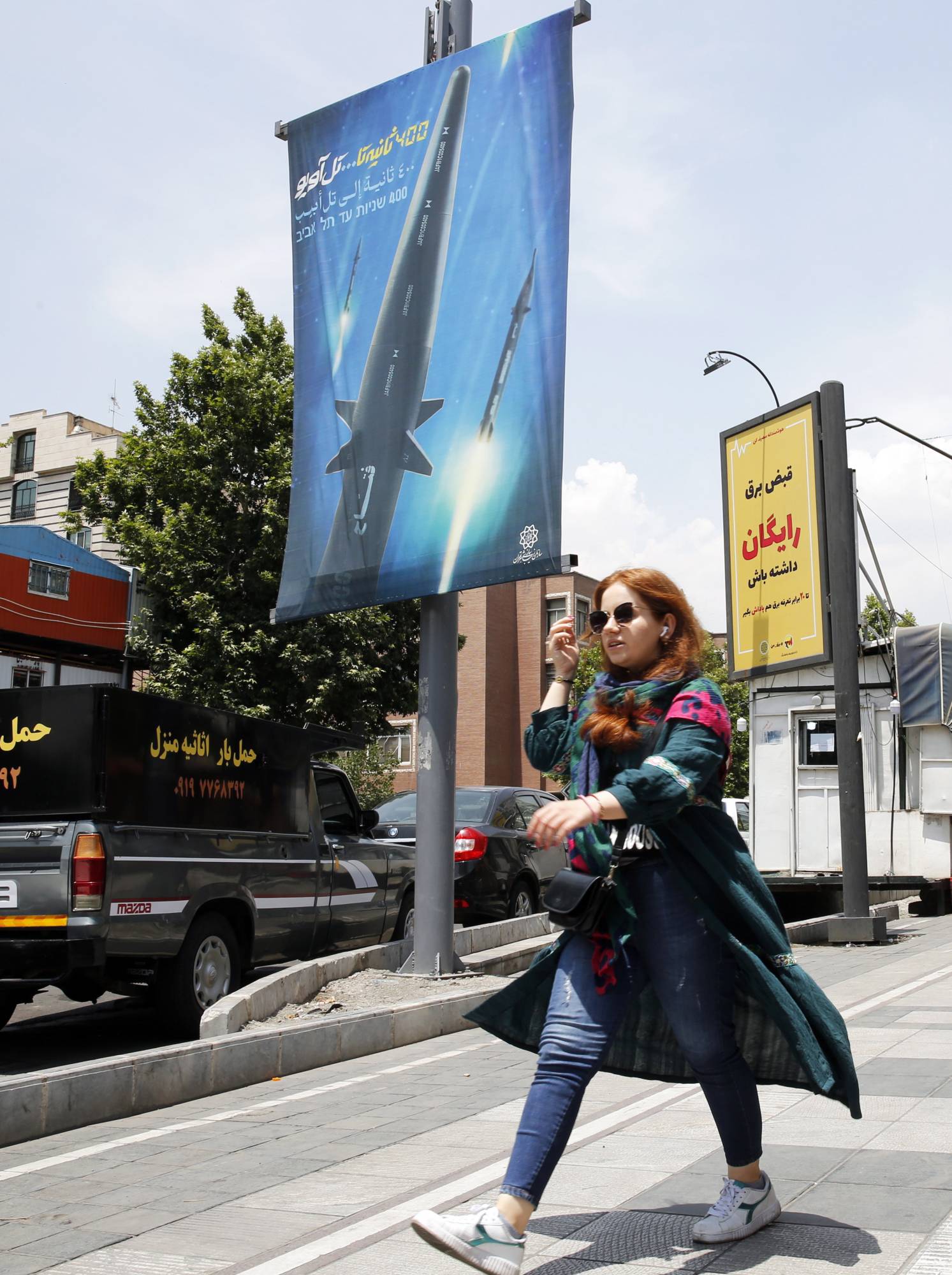 والأسبوع الماضي، أعلنت طهران تطوير صاروخ فرط صوتي يصل إلى إسرائيل. وانتشرت لوحات دعائية في عموم العاصمة طهران لصورة الصاروخ، وكُتِب عليها شعار «400 ثانية حتى تل أبيب».