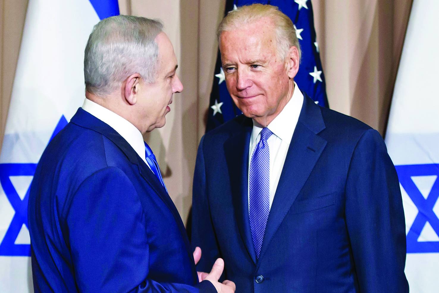 صورة أرشيفية لنتنياهو مع جو بايدن نائب الرئيس الأميركي آنذاك في دافوس يوم 21 يناير 2016 (أ.ب)
