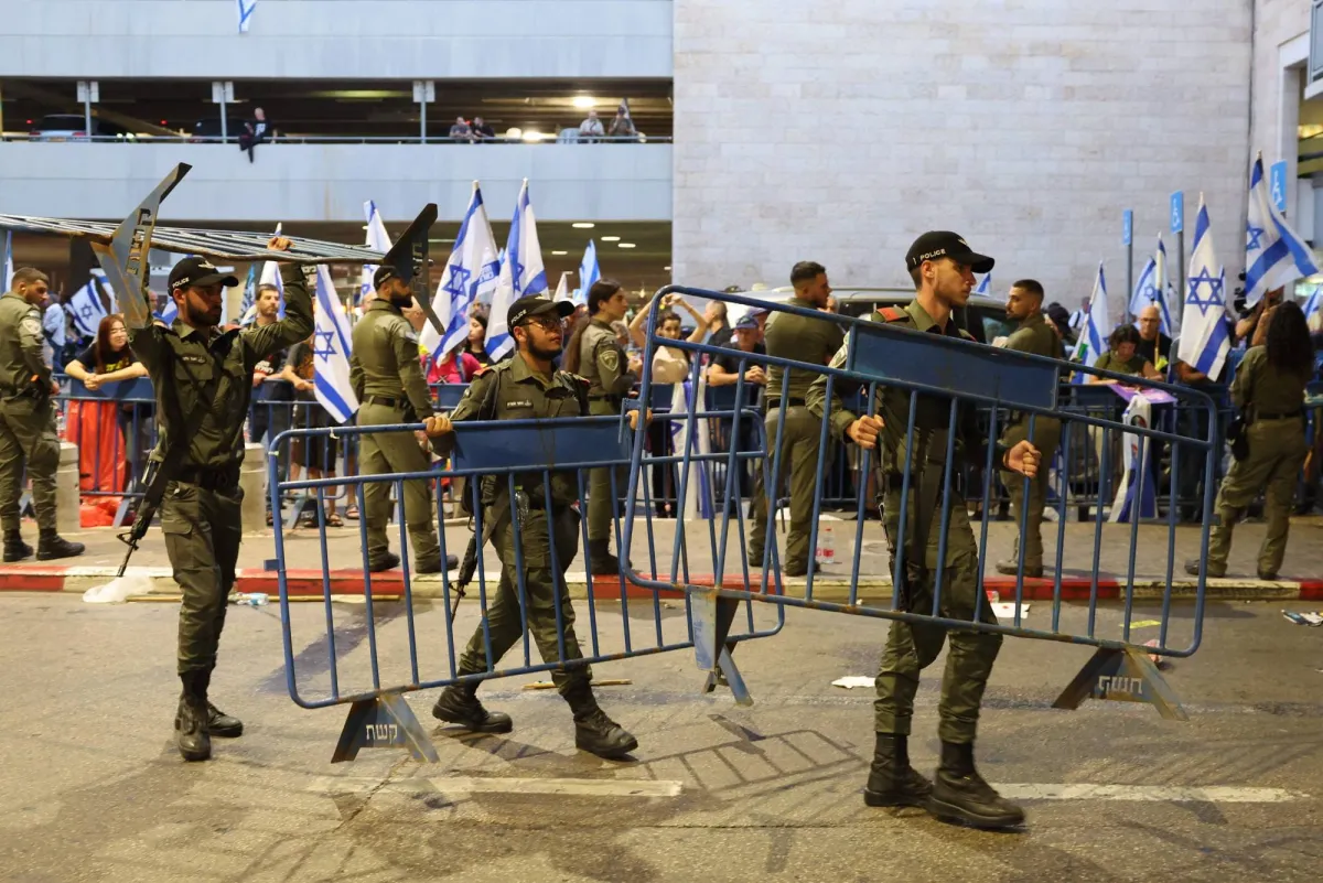 مع إصرار الحكومة الإسرائيلية اليمينية على خطتها للانقلاب على منظومة الحكم وإضعاف الجهاز القضائي، وتمريرها لقانون «المعقولية» الذي يعد أحد أخطر بنودها، وبالمقابل إصرار قادة الاحتجاج الشعبي على ما سمّته «يوم غضب ومقاومة»، الثلاثاء، الذي تشل فيه الحياة الرتيبة في جميع أنحاء البلاد، قررت الشرطة تعزيز قواتها بجميع المدن ومفارق الطرقات، كما لو أنها في حالة طوارئ. ووضعت خطط لمنع إغلاق مطار بن غوريون وطرد من يصل إليه من غير المسافرين والتصدي لمحاولات متظاهرين إغلاق الطرق المركزية.