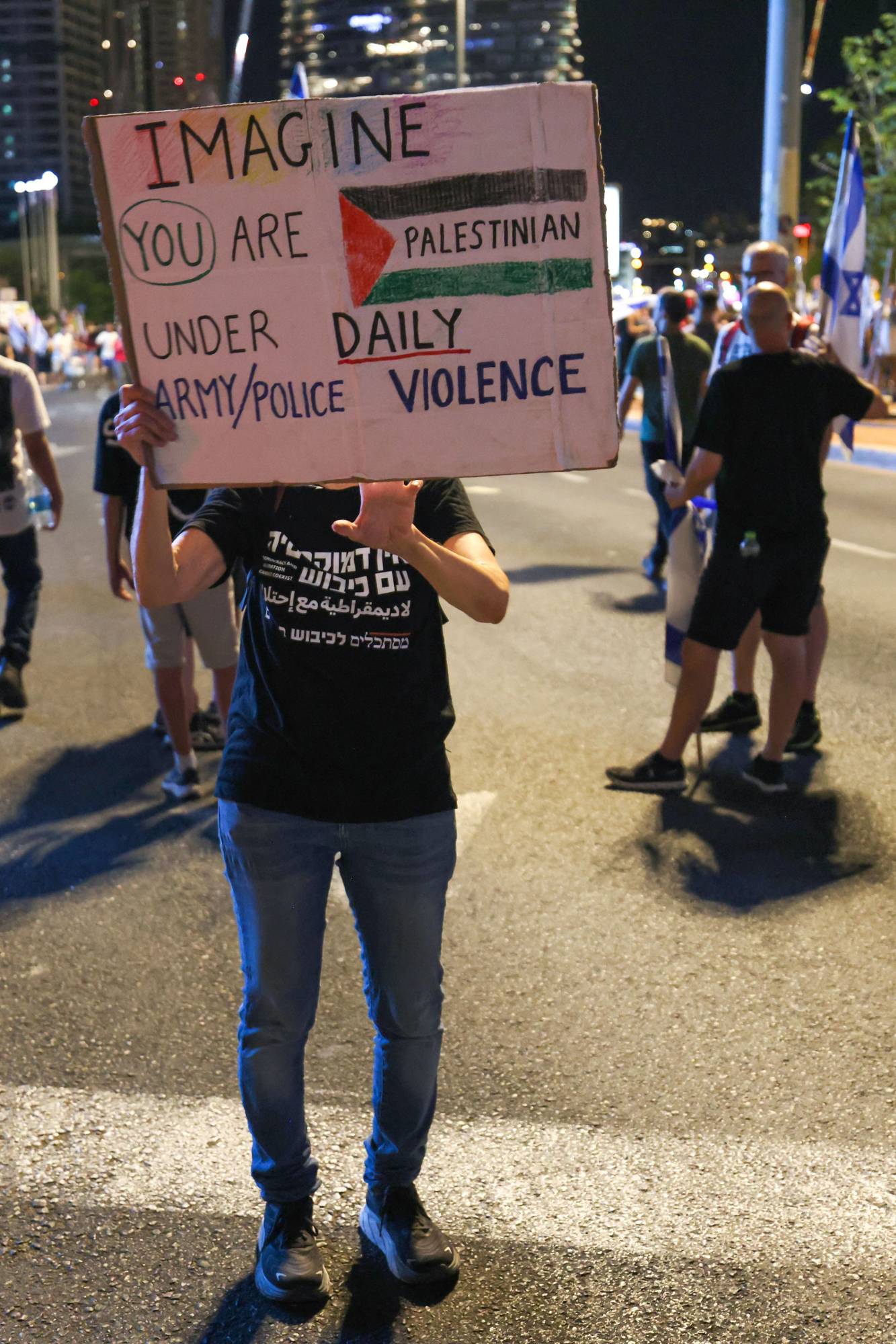وجاء من منظمي الاحتجاجات أن «المظاهرات اليوم تأتي بعد يومين من جلسة المحكمة العليا حول قانون منع عزل رئيس الحكومة الإسرائيلية، بنيامين نتنياهو، وفي خلفيتها دعوات الائتلاف الحكومي رفض قرار العليا في حال قررت إلغاء تعديل قانون أساس. ورغم حملة تحريضية كاذبة من قبل نتنياهو وشركائه ضد جهاز القضاء تدعو إلى عصيان الحكم وتقويض الحق الأساسي للمحكمة العليا في مراجعة أي تشريع، ورغم العنف من الشرطة والتحريض الدموي علينا، فقد جاءت المظاهرات مهيبة».