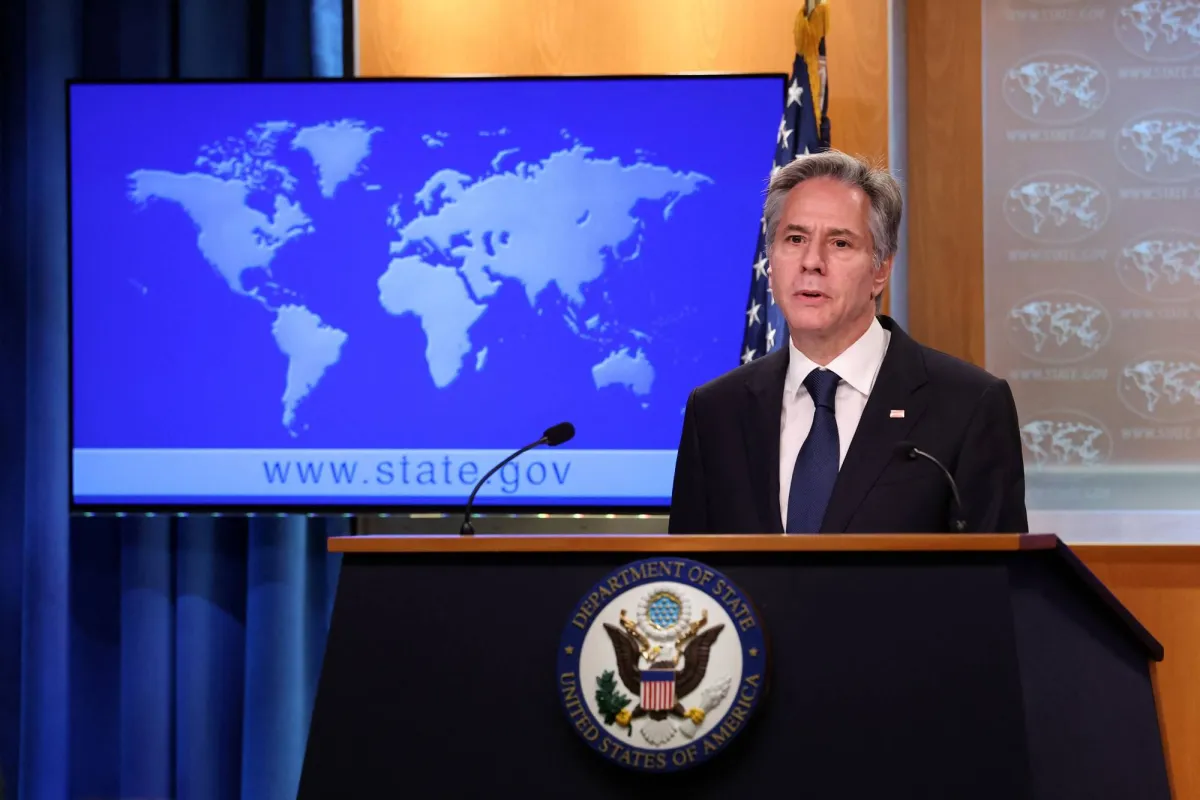 بلينكن يتحدث خلال مؤتمر صحافي في واشنطن اليوم (أ.ف.ب)