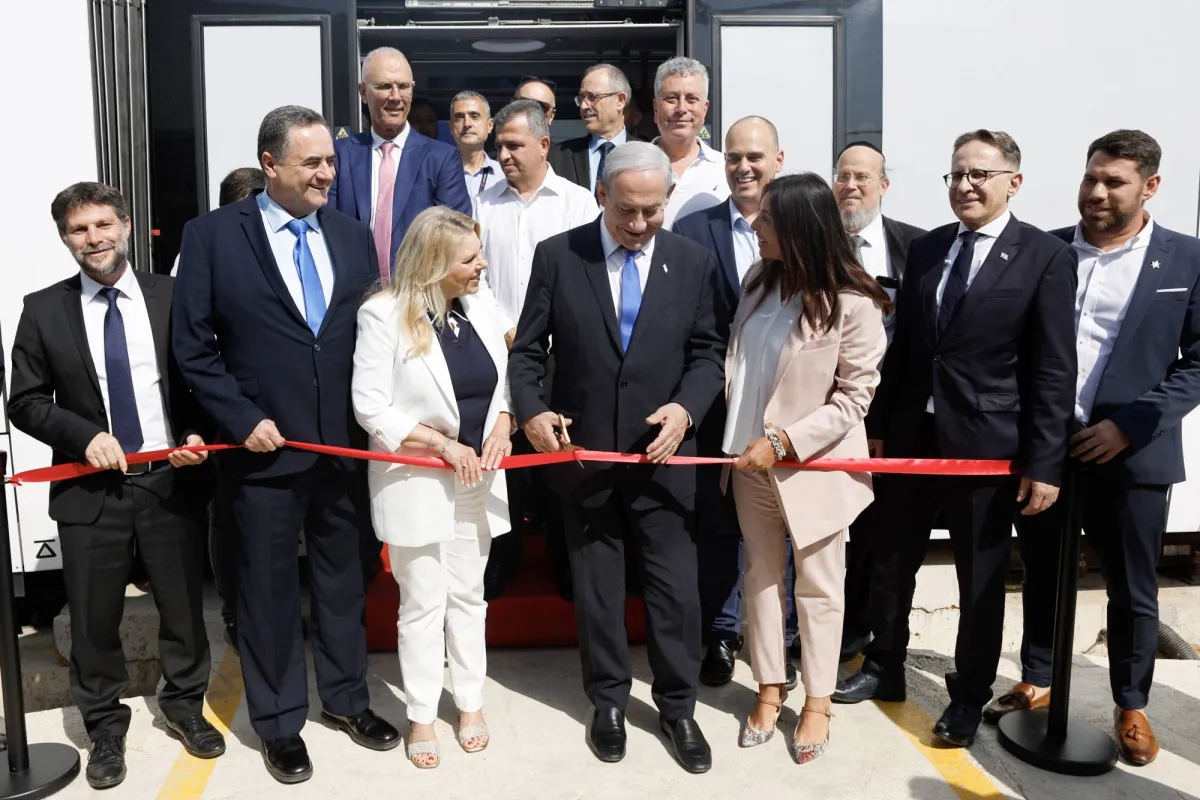 وقال نتنياهو في الحفل الذي أقيم في بتاح تكفا بينما تجمع عشرات المتظاهرين في مكان قريب: «اليوم يوم احتفالي في إسرائيل». وأشار إلى «ثورة في النقل... هذا تحقيق لرؤية تاريخية».