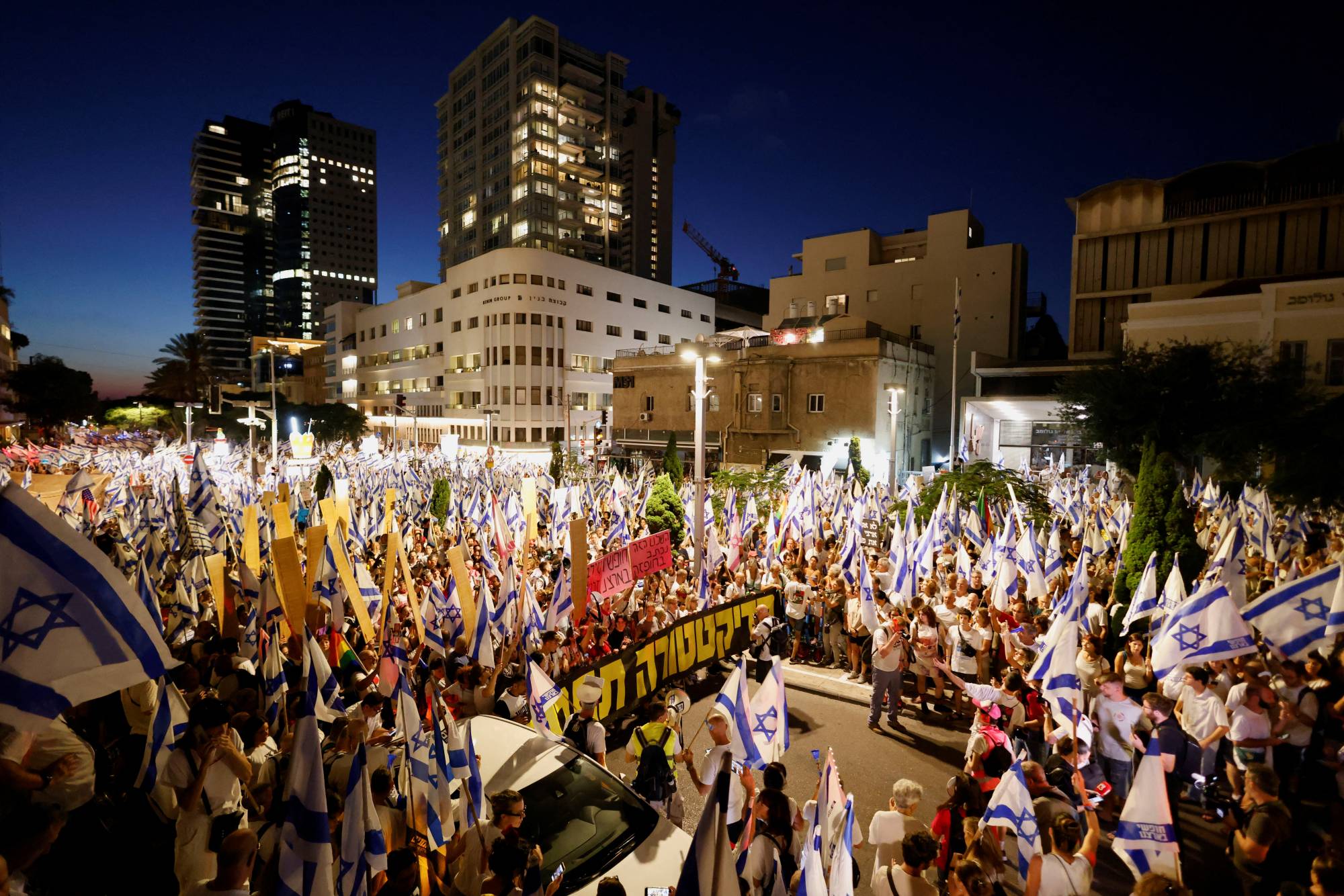 يذكر أن آلاف المتظاهرين الإسرائيليين ومعهم المئات من اليهود الأميركيين، تظاهروا الأربعاء في نيويورك أمام الفندق الذي جرى فيه اللقاء بين نتنياهو بايدن. وفي الوقت ذاته تظاهر آلاف الإسرائيليين أمام مقري السفارة الأميركية في تل أبيب والقدس. وقد ارتفعت في المظاهرات الثلاث أعلام إسرائيل والولايات المتحدة وشعارات موحدة ومنها: «بايدن لا تبيض خطة نتنياهو الانقلابية» و«نتنياهو يحرق البيت فلا تساعده»، «بايدن، لا تسمح لنتنياهو بتخريب إسرائيل من الداخل»،