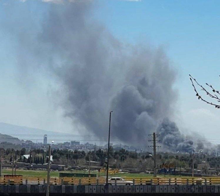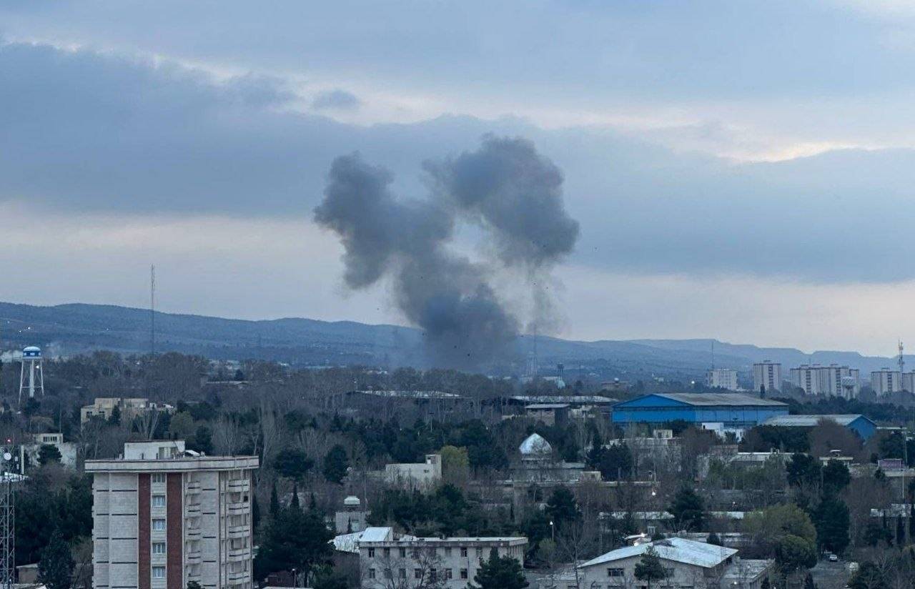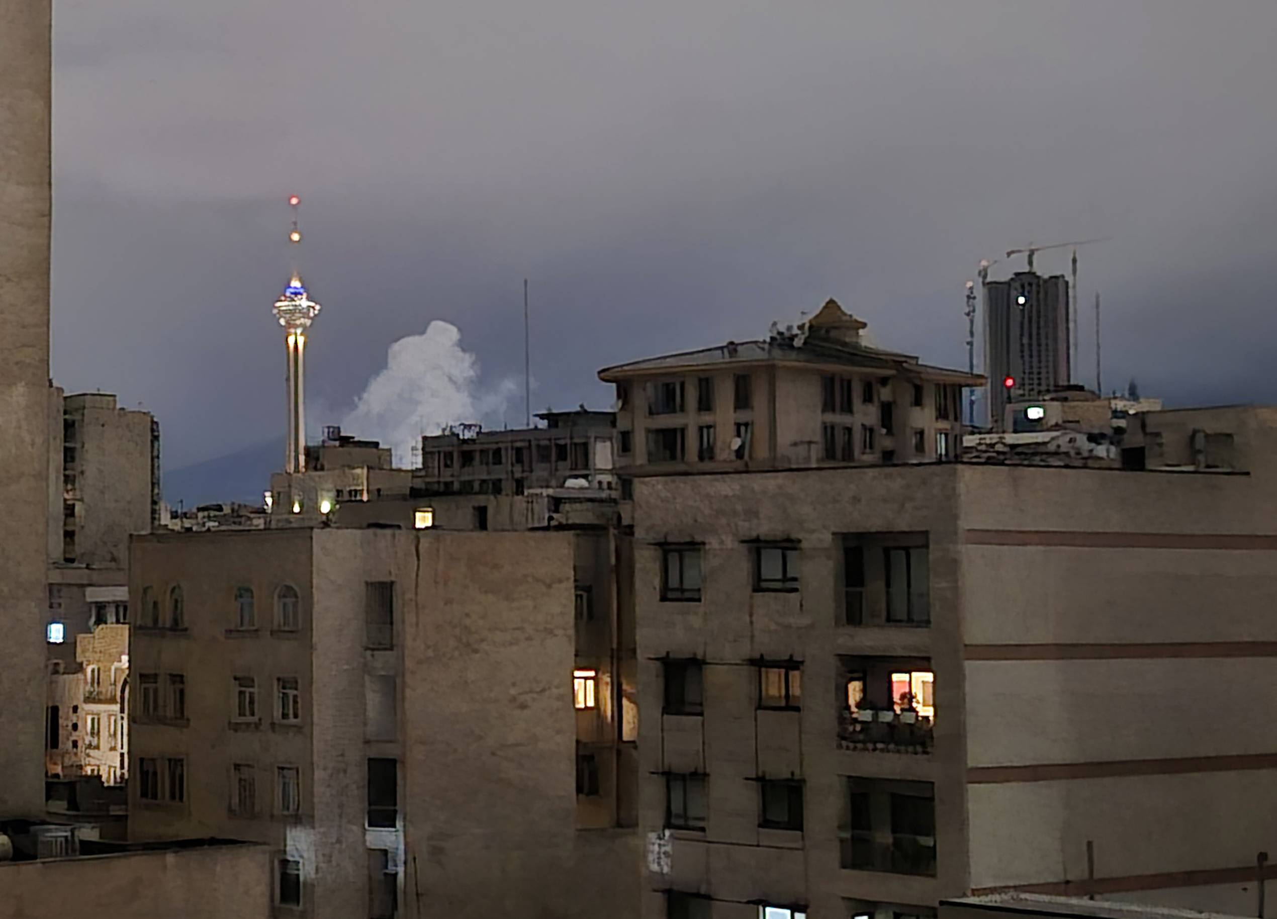 دخان متصاعد عقب انفجارات متتالية في الجزء الشمالي الشرقي من طهران فجر السبت (غيتي)
