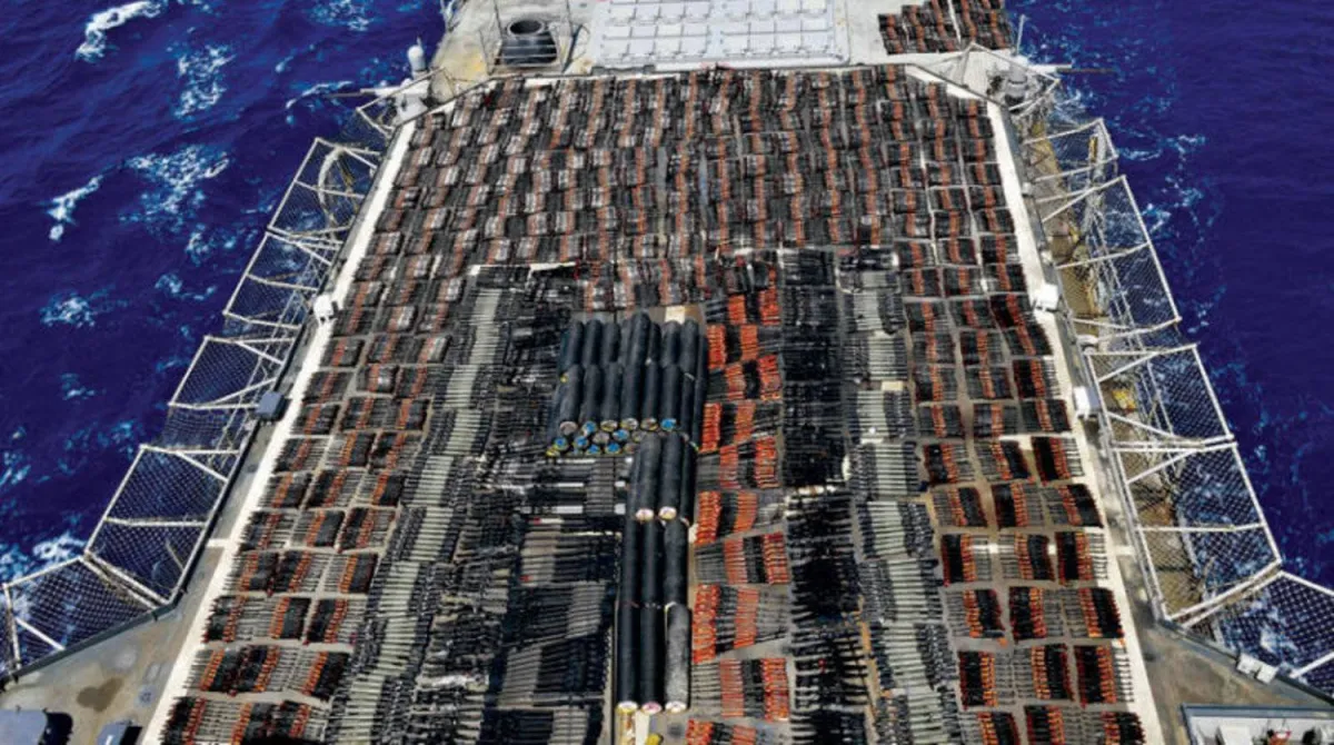 وقد قامت القوات البحرية الأميركية على مدى السنوات الماضية بمصادرة أسلحة تم ضبطتها على متن سفن صيد قادمة من إيران وكانت متجهة إلى الحوثيين في اليمن، وتشمل الأسلحة بنادق صغيرة وذخيرة.