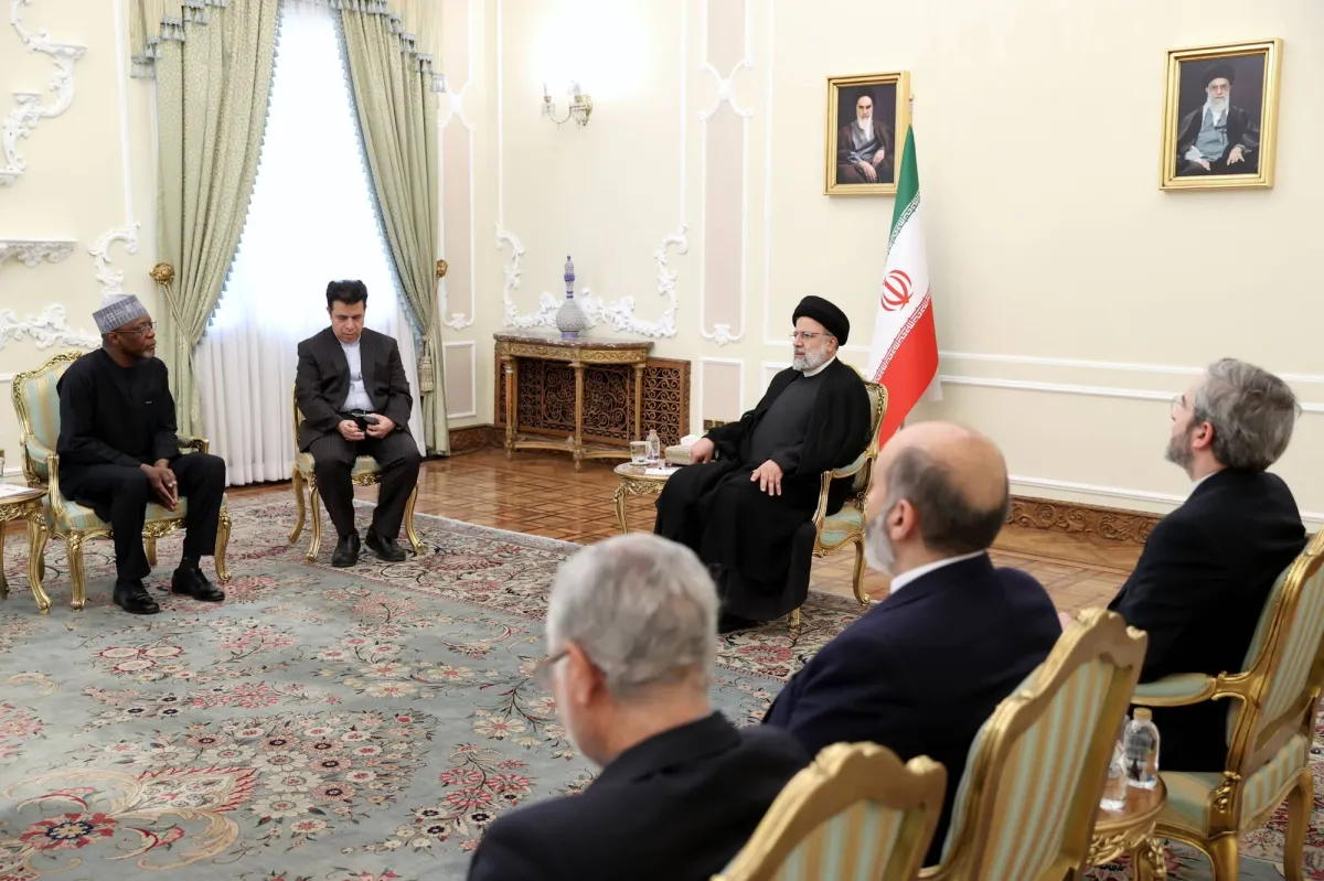 رئيسي خلال استقباله وزير الخارجية المعيّن من قبل المجلس العسكري في النيجر بكاري ياو سانغاري (الرئاسة الإيرانية)