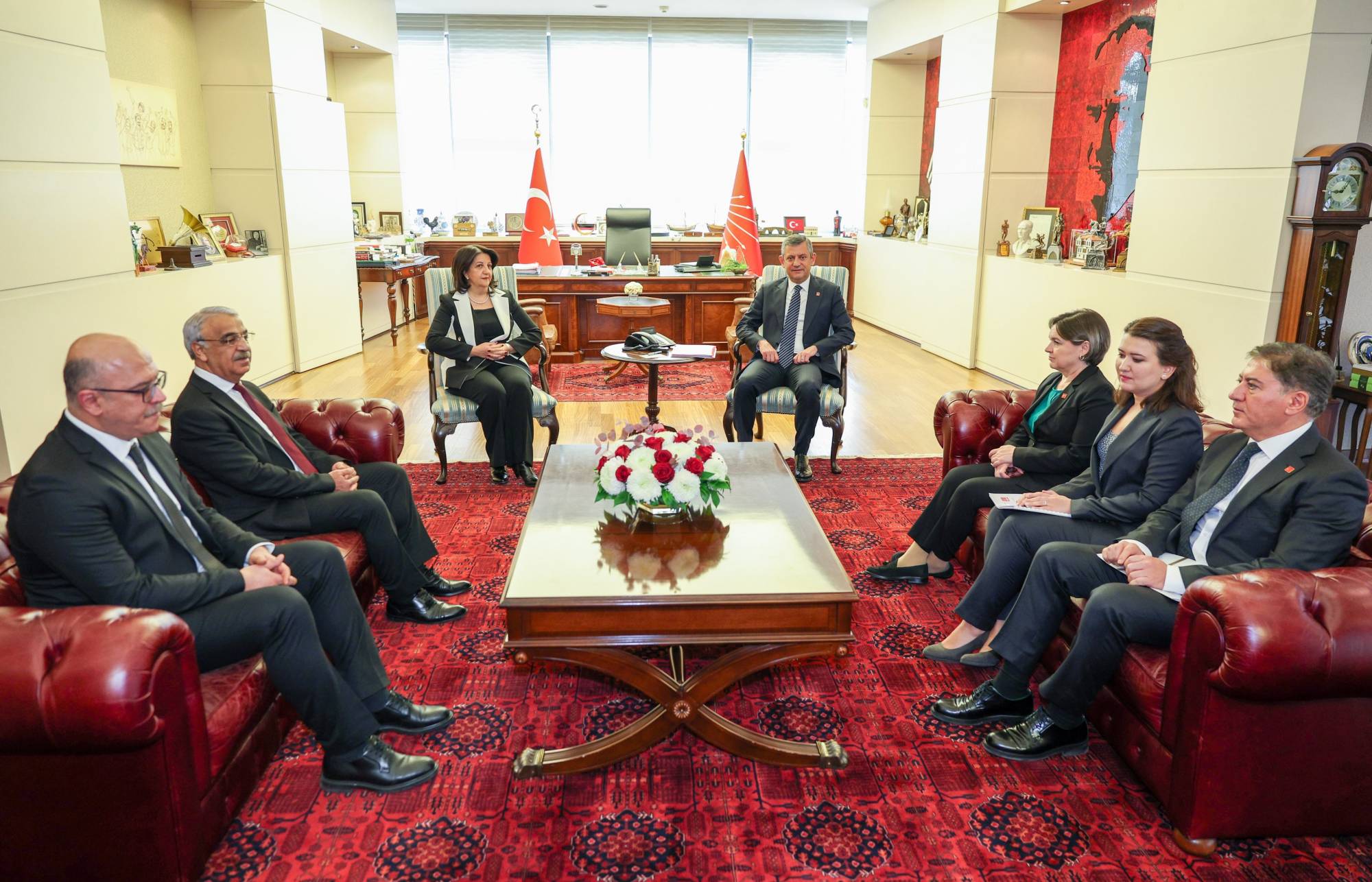 جانب من اجتماع أوزيل وقيادات حزب «الشعب الجمهوري» مع «وفد إيمرالي» (حساب الحزب في «إكس»)