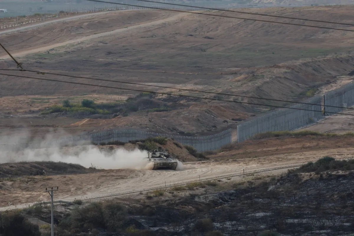 دبابة إسرائيلية تنفذ مناورة على حدود قطاع غزة (رويترز)
