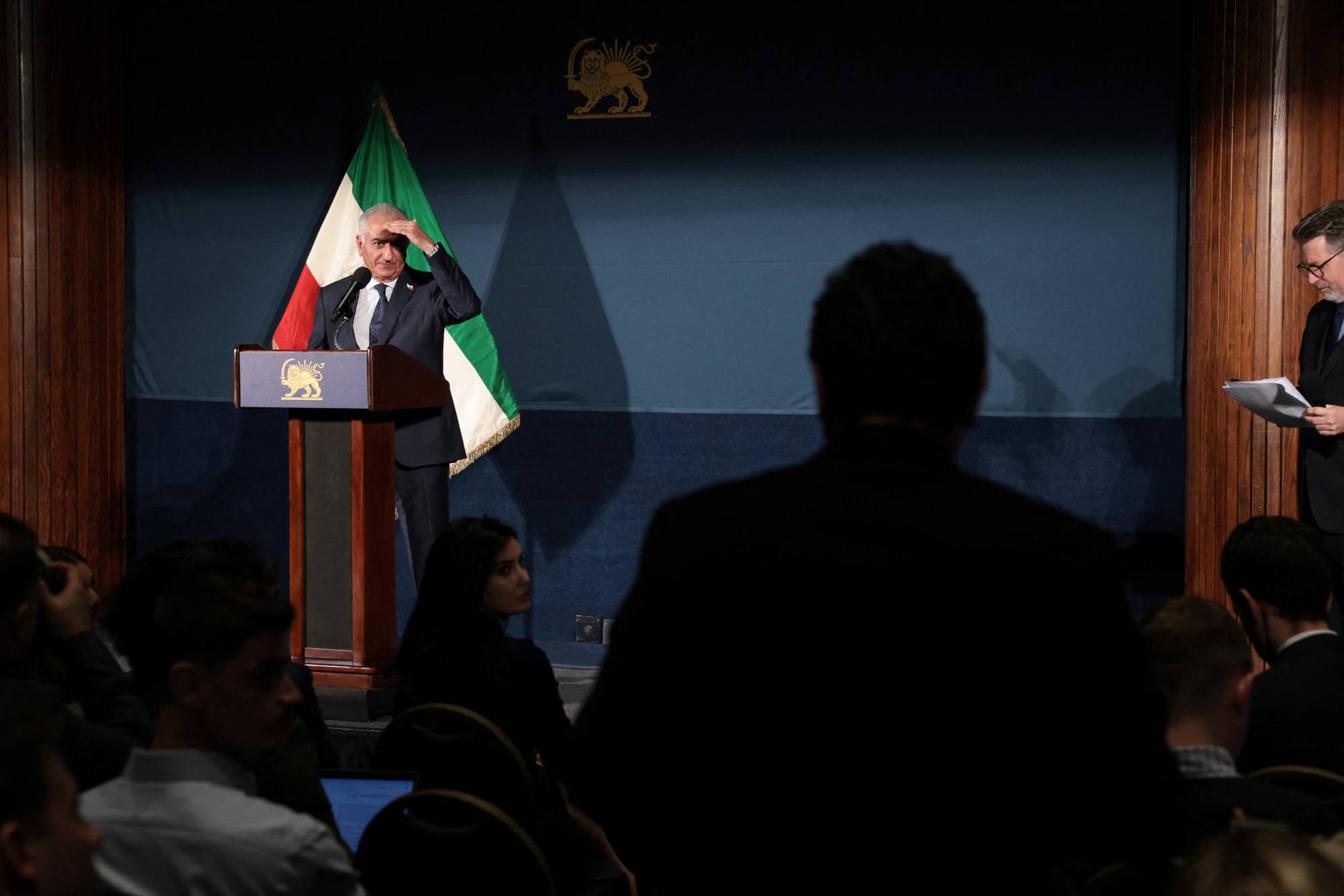 رضا بهلوي نجل آخِر شاه لإيران خلال مؤتمر صحافي بواشنطن (رويترز)