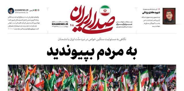 أسبوعية «صوت إيران» تطالب المسؤولين السابقين الكبار بالانضمام إلى الناس