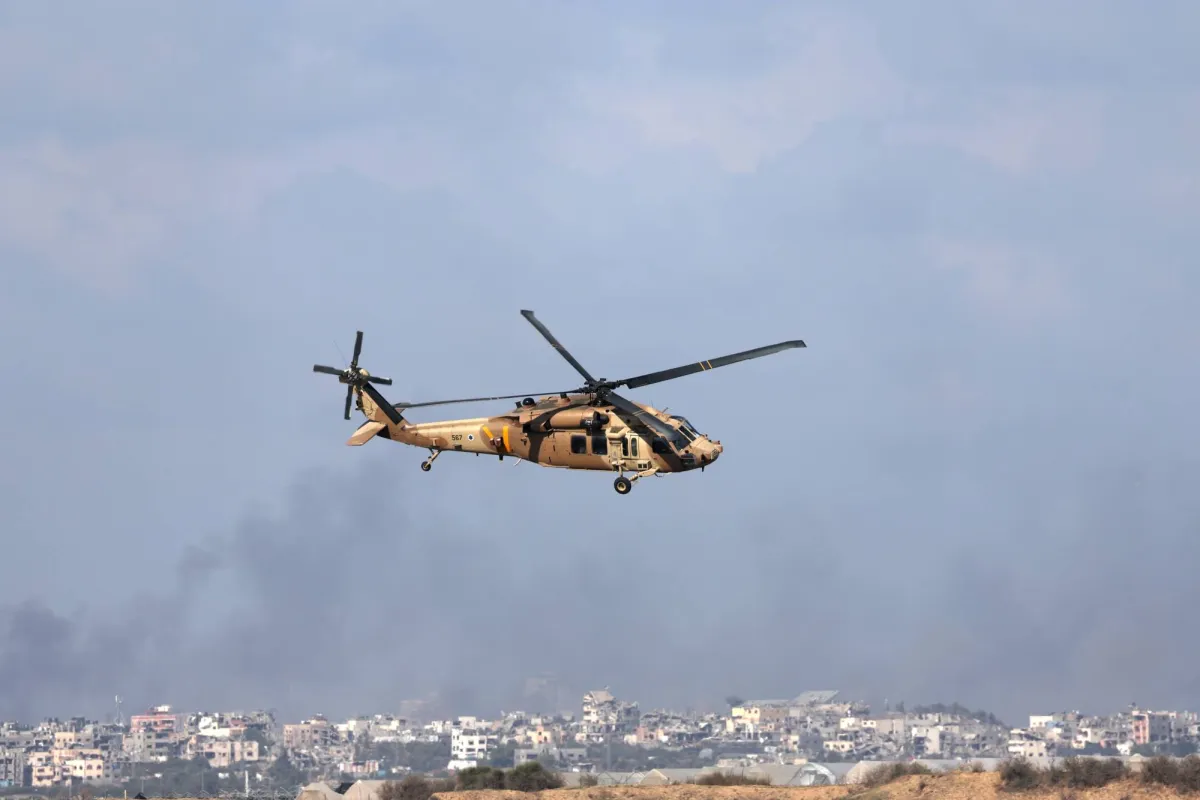 طائرة هليكوبتر إسرائيلية تُحلق فوق غزة (إ.ب.أ)