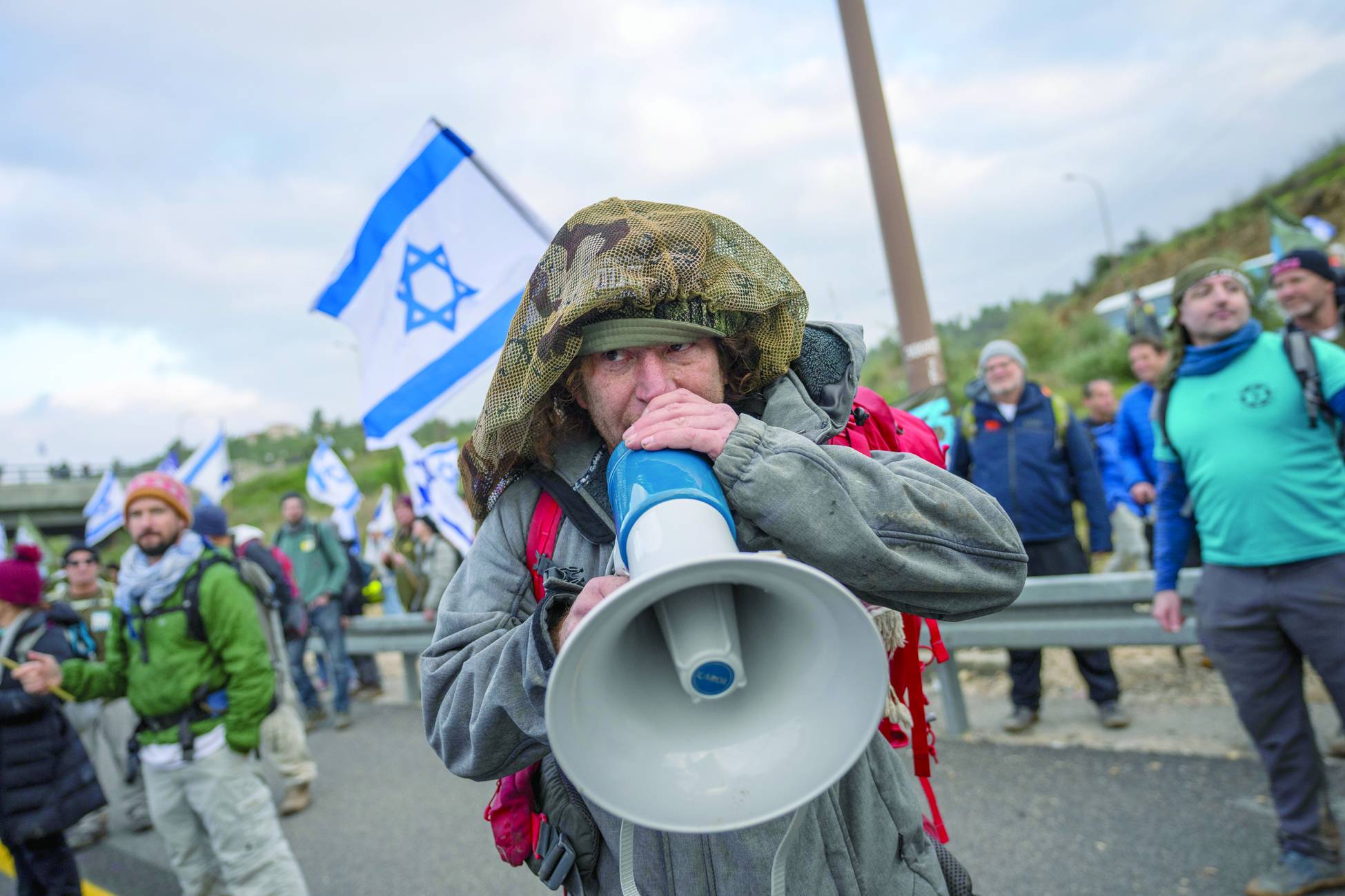 جانب من احتجاجات سابقة لجنود الاحتياط الإسرائيلي ضد خطط نتنياهو بشأن القضاء (أ.ب)