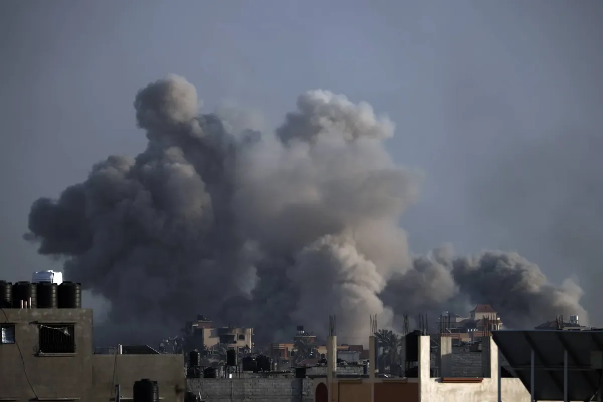 تصاعد الدخان جراء الغارات الإسرائيلية على قطاع غزة أمس (أ.ب)