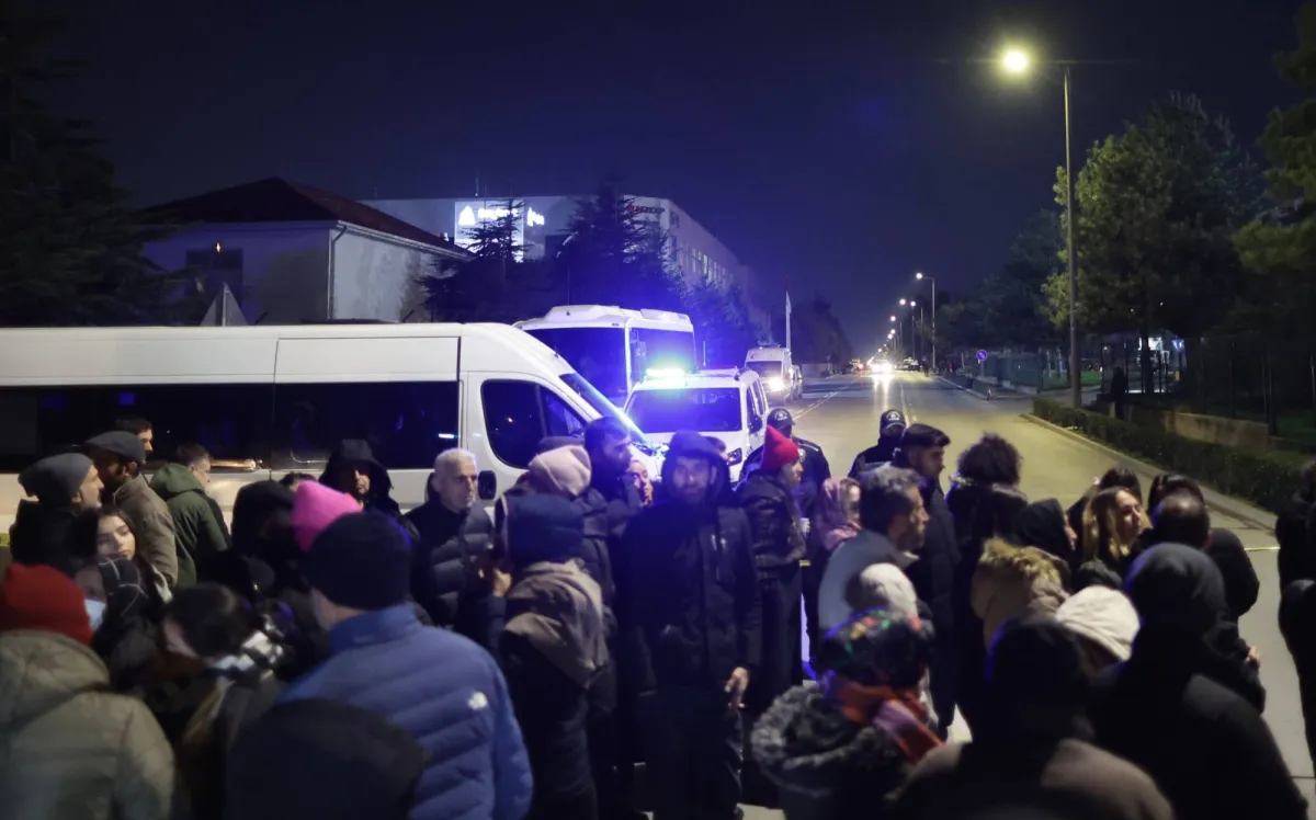 أقارب الرهائن ينتظرون بينما تقوم الشرطة التركية بتأمين منطقة مصنع بروكتر أند غامبل بعد أن احتجز مسلح عدداً من الأشخاص كرهائن في مقاطعة قوجه إيلي، تركيا في 01 فبراير 2024 (إ.ب.أ)