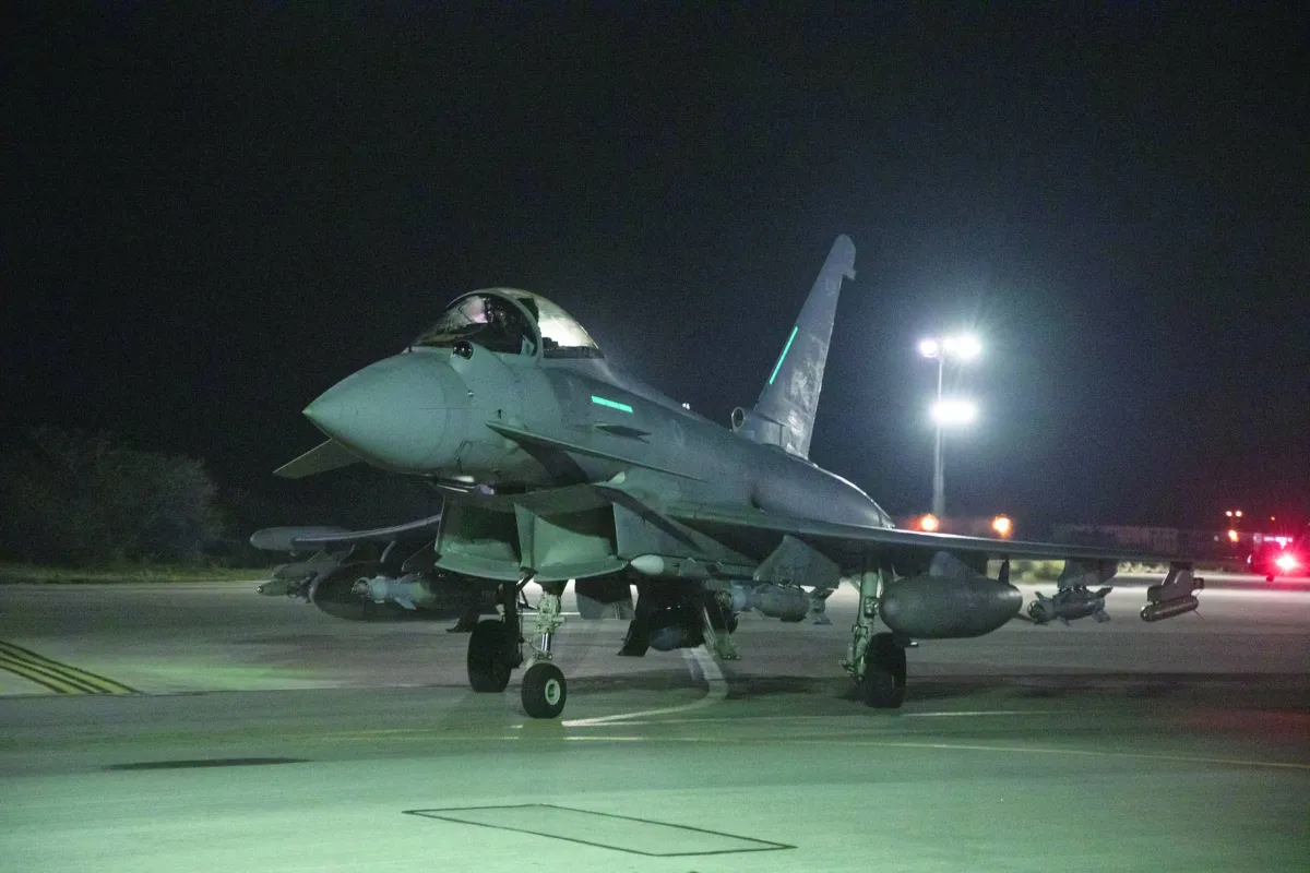 مقاتلة بريطانية من طراز «تايفون» تستعد للإقلاع من قاعدة في قبرص في مهمة ضد الحوثيين في اليمن (أ.ب)