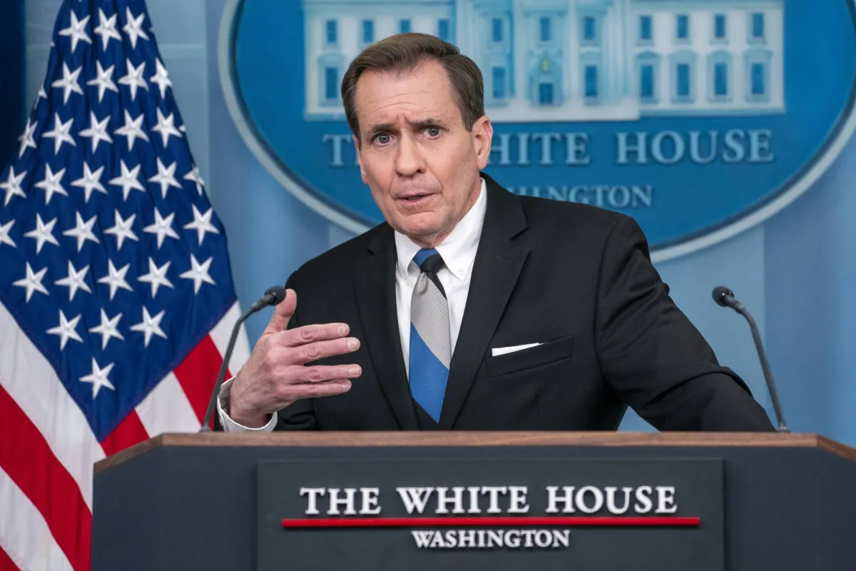 منسق مجلس الأمن القومي للاتصالات الاستراتيجية جون كيربي يتحدث في مؤتمر صحافي بالبيت الأبيض في العاصمة الأميركية واشنطن في 15 فبراير 2024 (إ.ب.أ)