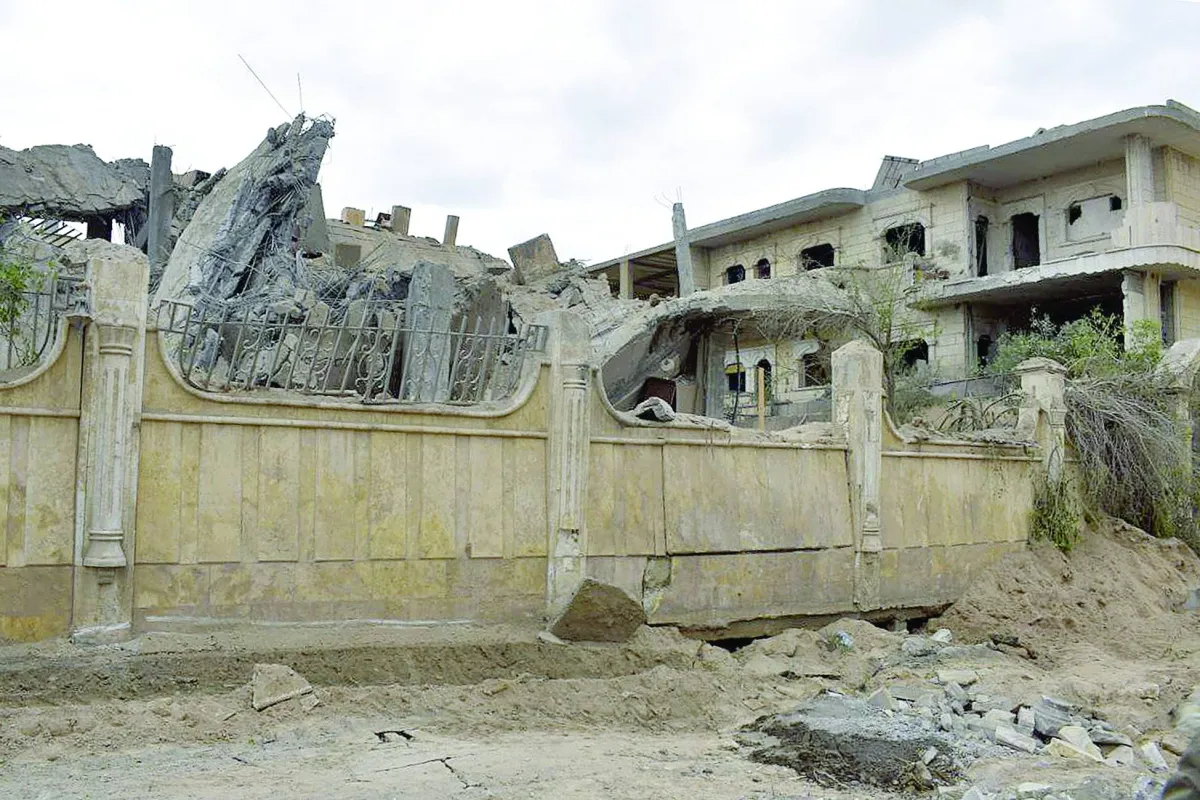مبنى متضرر بعد غارة جوية على مدينة دير الزور شرق سوريا طالت مواقع لـ«الحرس الثوري» الإيراني (أ.ف.ب) وفي الإطار بهروز واحدي المستشار في «الحرس الثوري» الإيراني