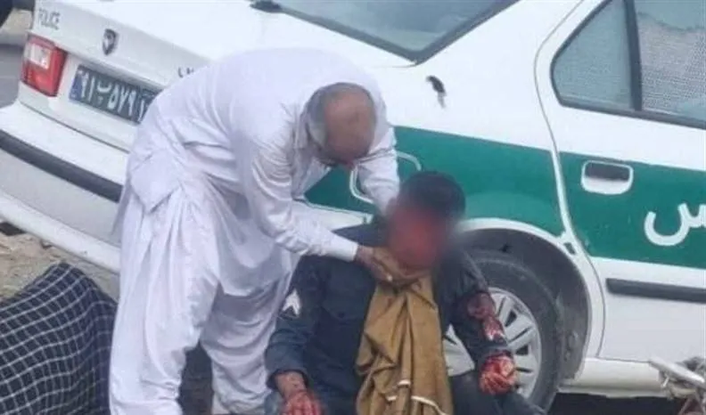 رجل يسعف شرطياً جريحاً في هجوم بلوشستان جنوب شرقي إيران اليوم (تسنيم)