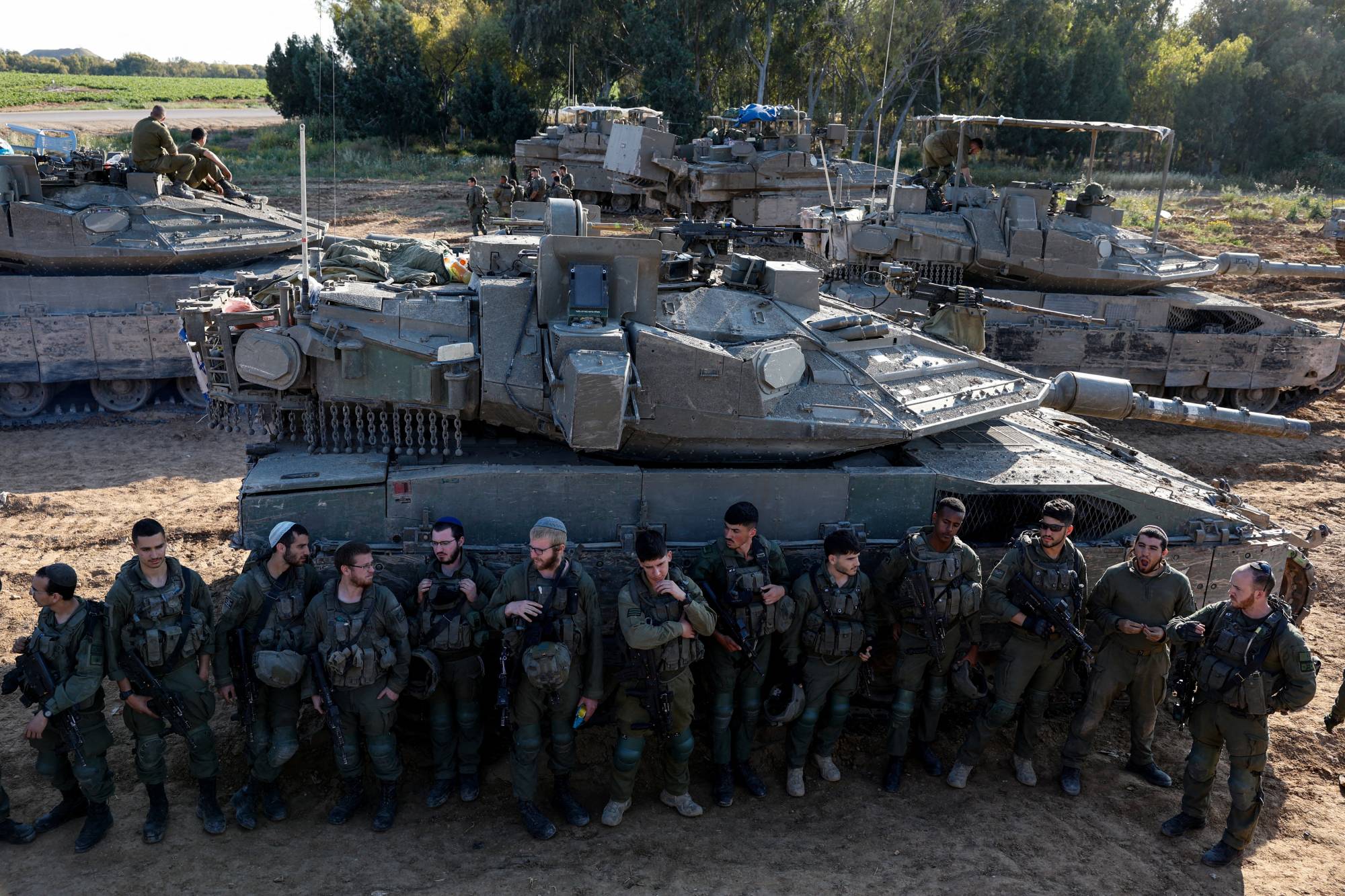 جنود إسرائيليون يستمعون إلى إحاطة بالقرب من الحدود بين إسرائيل وغزة وسط الصراع المستمر بين إسرائيل وحركة «حماس»... إسرائيل 10 أبريل 2024 (رويترز)
