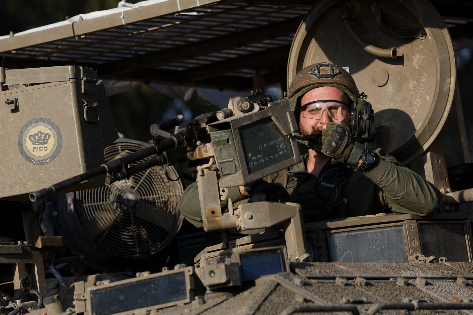 جندي إسرائيلي في ناقلة جند مدرعة بالقرب من الحدود بين إسرائيل وغزة... جنوب إسرائيل في 10 أبريل 2024 (رويترز)