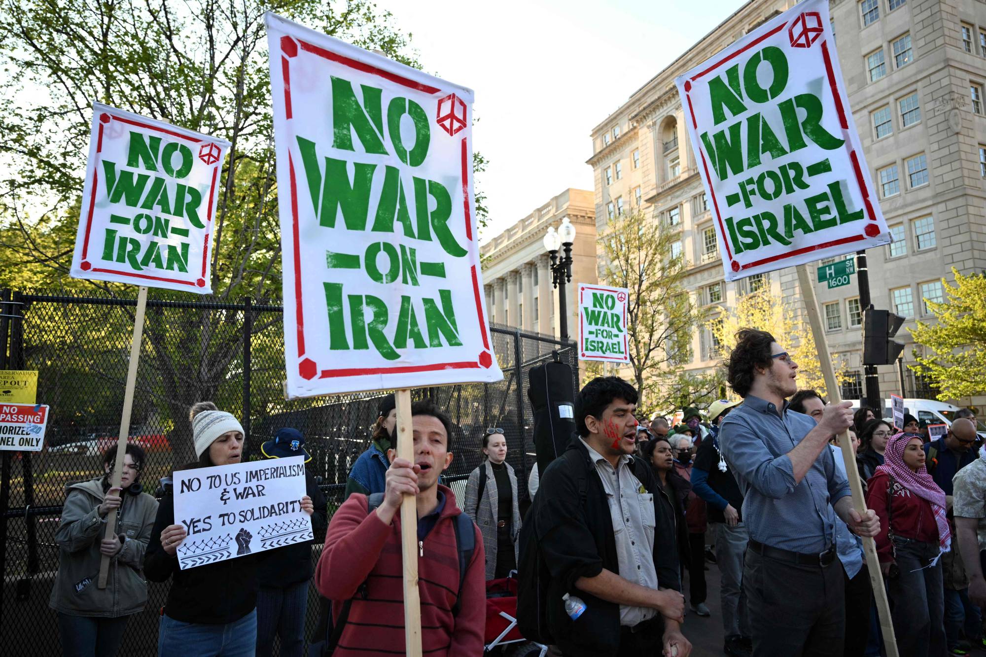 احتجاج ضد العمليات العسكرية الأميركية في إيران بالقرب من البيت الأبيض في واشنطن العاصمة يوم أمس (أ.ف.ب)
