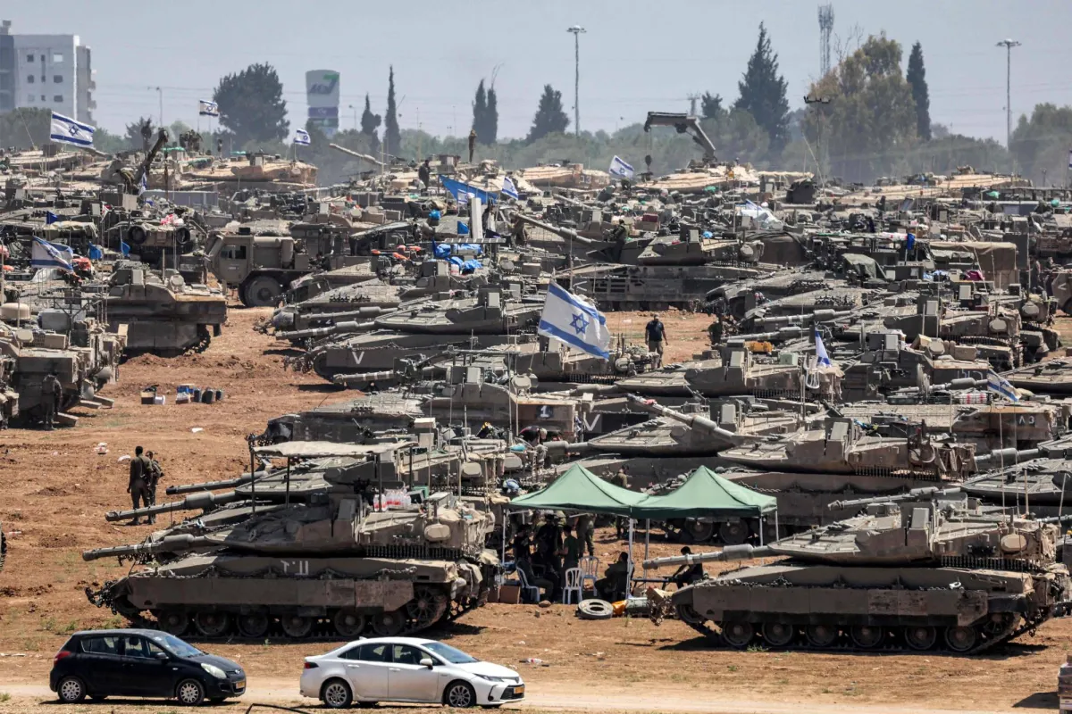 دبابات ومركبات عسكرية إسرائيلية متمركزة بالقرب من الحدود مع قطاع غزة، الخميس (أ.ف.ب)