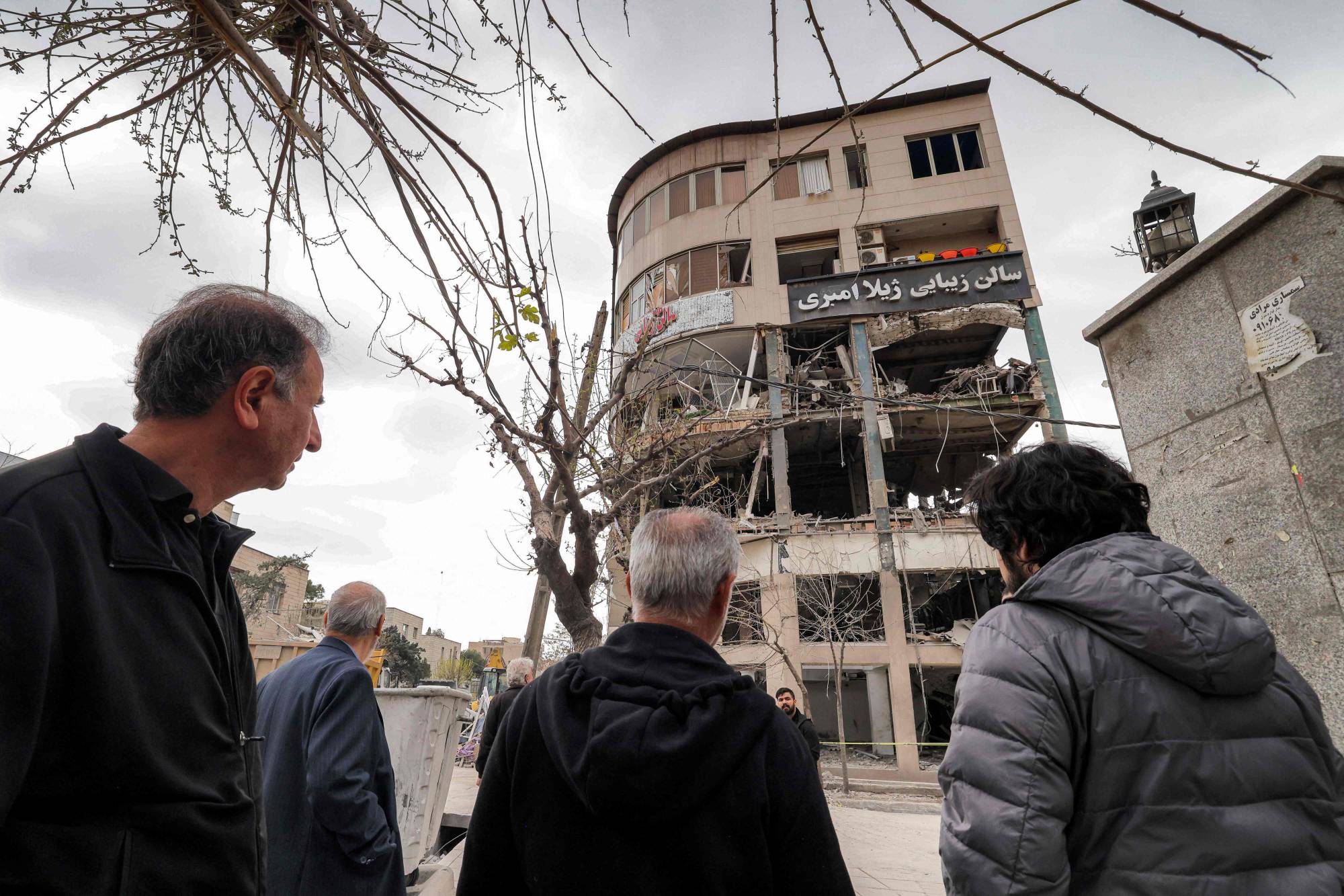 الدمار لحق بمبنى مكاتب عقب هجوم صاروخي على طهران الأحد (أ.ف.ب)