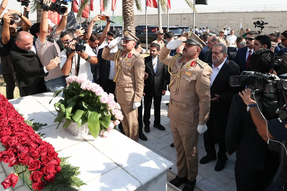 ومن المقرر أن ينتقل بزشكيان إلى محافظة السليمانية ويضع إكليلاً من الزهور على ضريح الرئيس الراحل جلال طالباني، وفقاً لمسؤول إيراني.