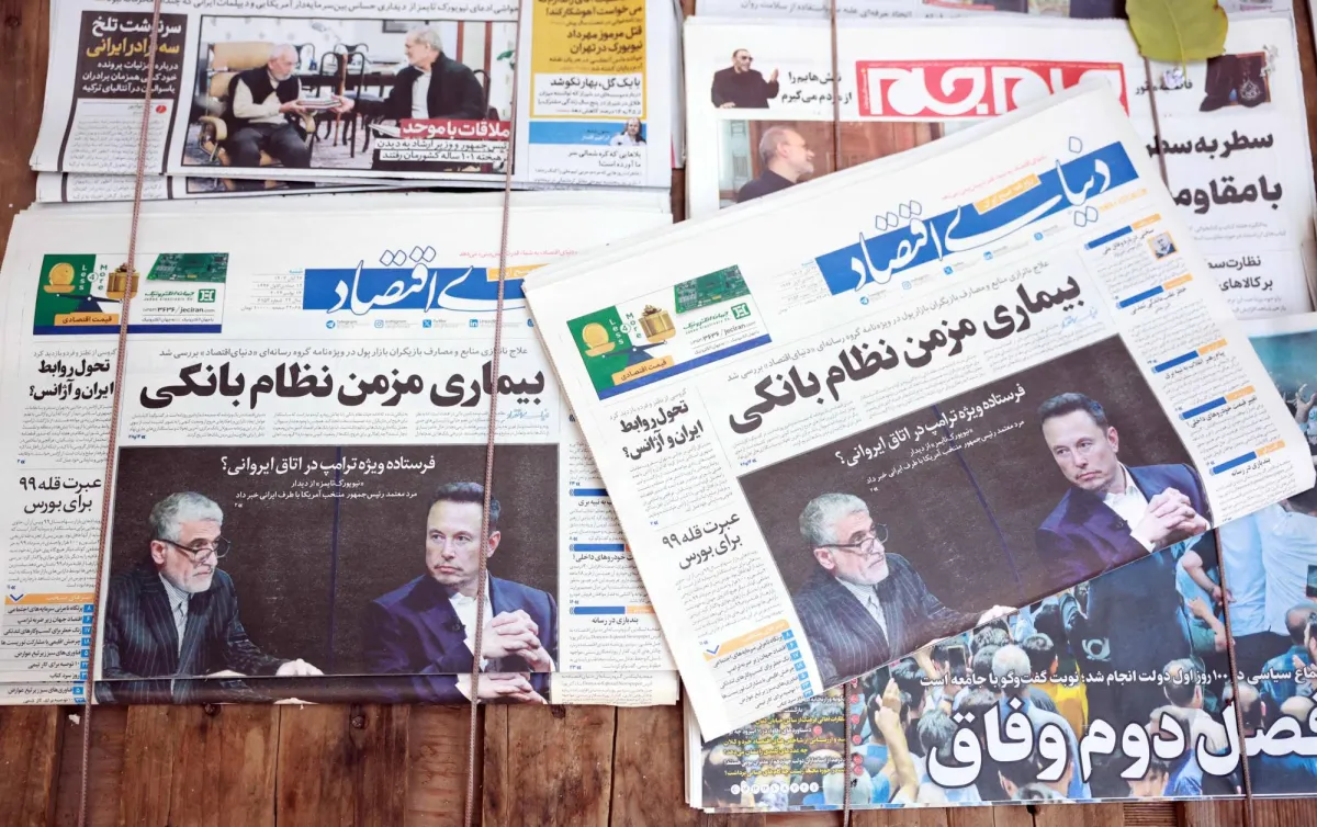 وسلطت الصحافة الإيرانية الضوء على تقرير صحيفة «نيويورك تايمز» عن اجتماع بين سفير طهران لدى الأمم المتحدة والملياردير إيلون ماسك؛ إذ اختارت صحيفة «فرهختيغان» الإيرانية اليومية في صدارة صفحتها الأولى رسماً كاريكاتورياً لإيلون ماسك.
