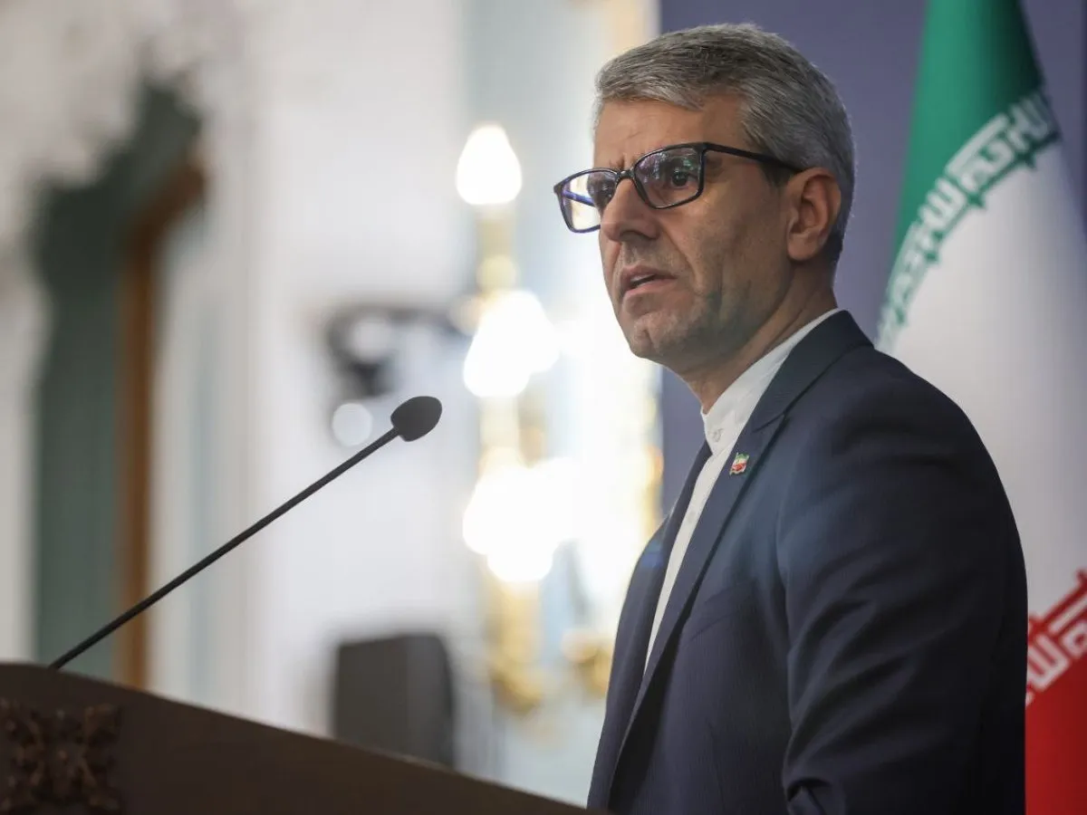 صورة نشرتها الخارجية الإيرانية من المتحدث باسمها إسماعيل بقائي خلال مؤتمر صحافي