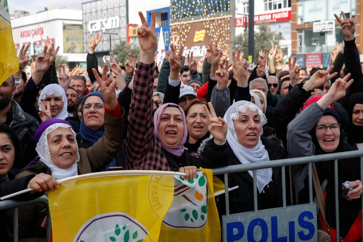 كرديات خلال مظاهرة في إسطنبول للمطالبة بالإفراج عن أوجلان (موقع حزب الديمقراطية والمساواة للشعوب)