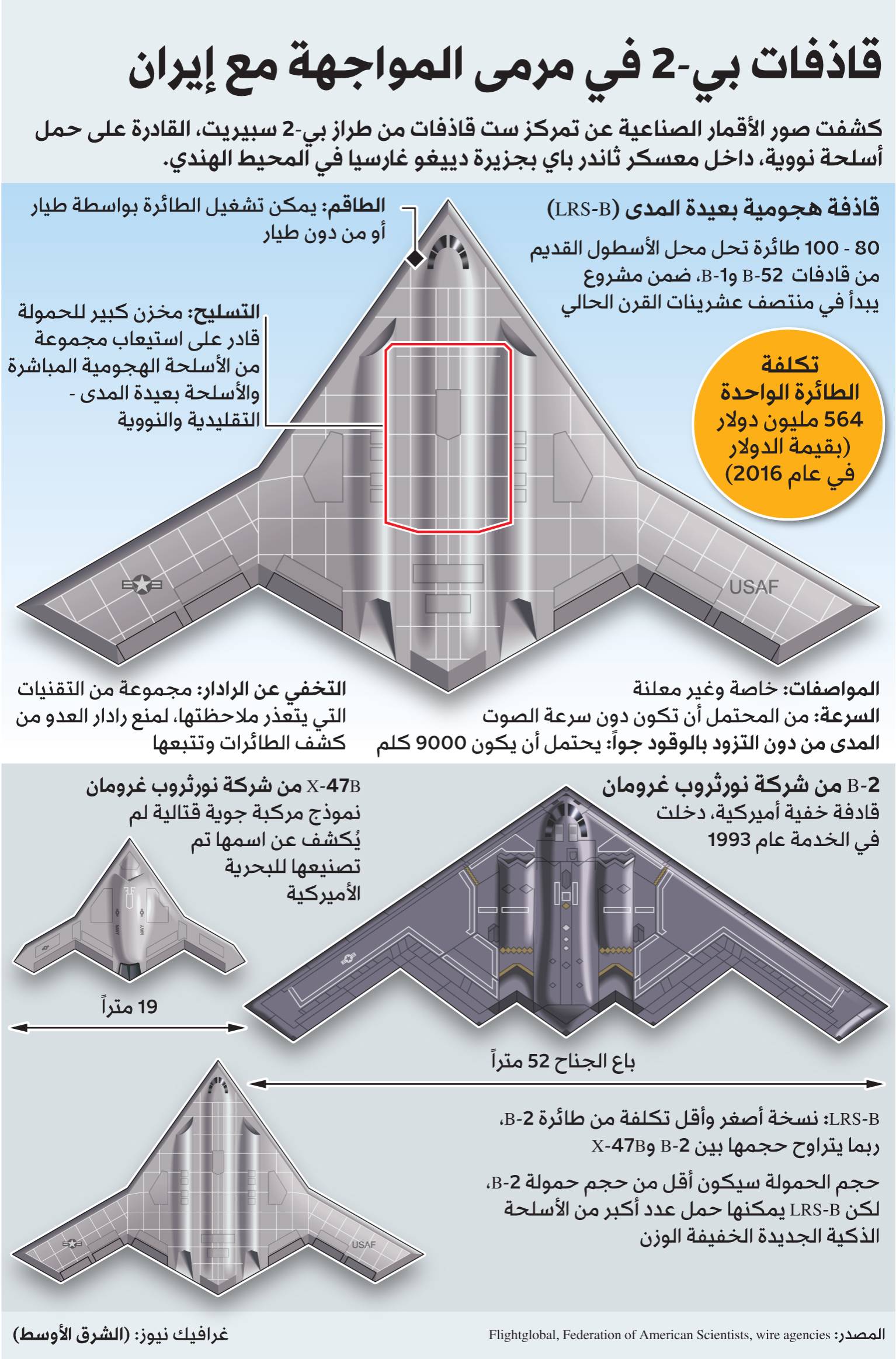 وكان مسؤولون أميركيون قد قالوا لـ«رويترز» إن واشنطن نقلت ما يصل إلى 6 قاذفات «بي2» في مارس (آذار) الماضي إلى قاعدة عسكرية أميركية - بريطانية في جزيرة دييغو غارسيا بالمحيط الهندي، وسط حملة قصف أميركية في اليمن وتصاعد التوتر مع إيران.