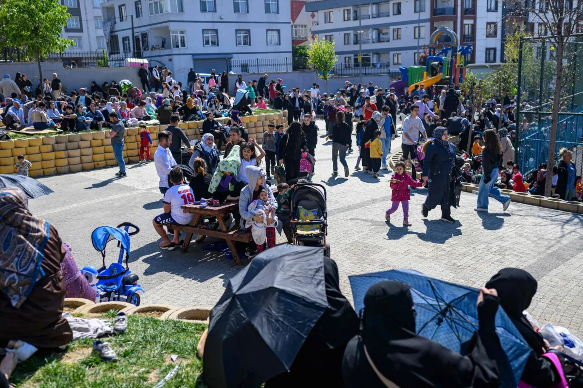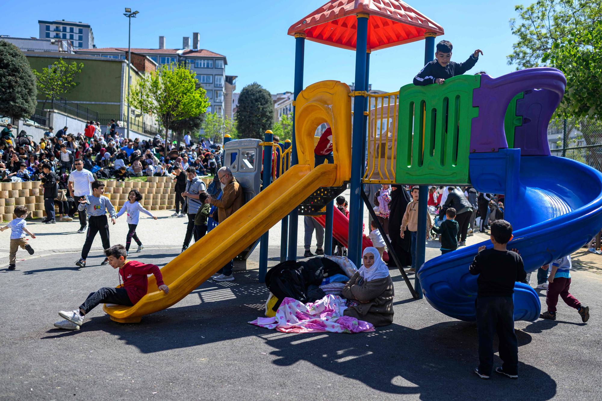 سكان ينتظرون في حديقة بإسطنبول اليوم عقب الزلزال (أ.ف.ب)