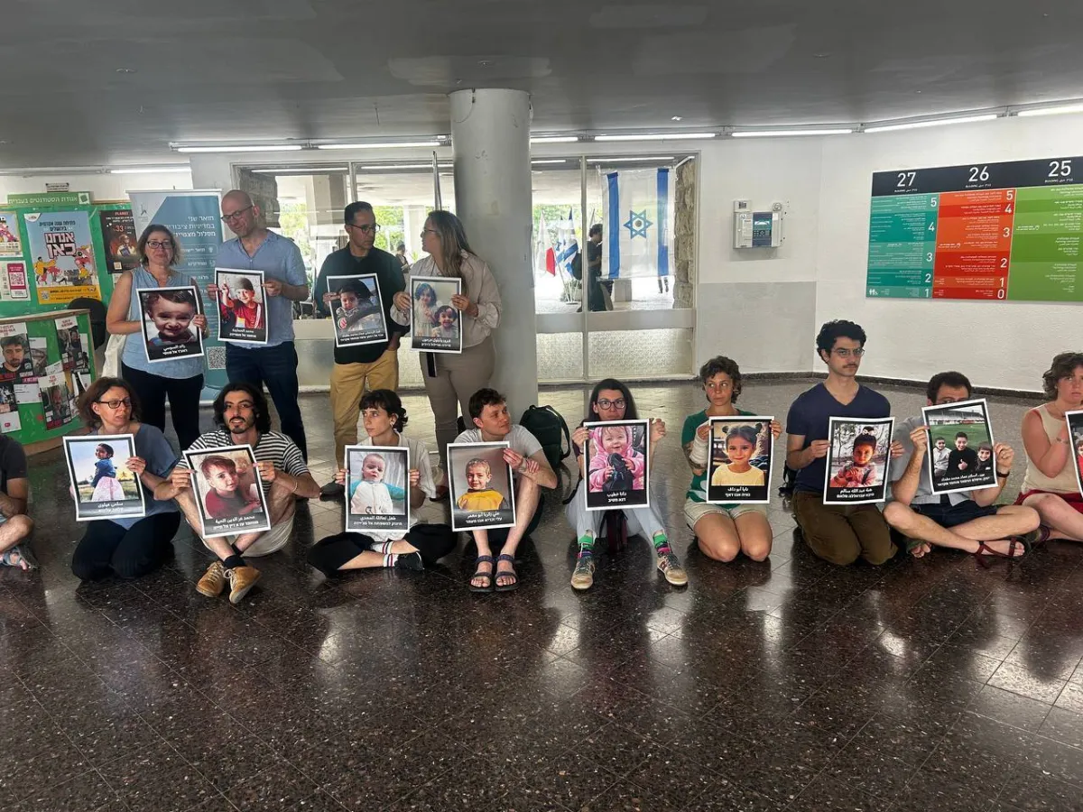 يهود عرب يرفعون صور أطفال من غزة قتلوا بنيران الجيش الإسرائيلي (إكس)