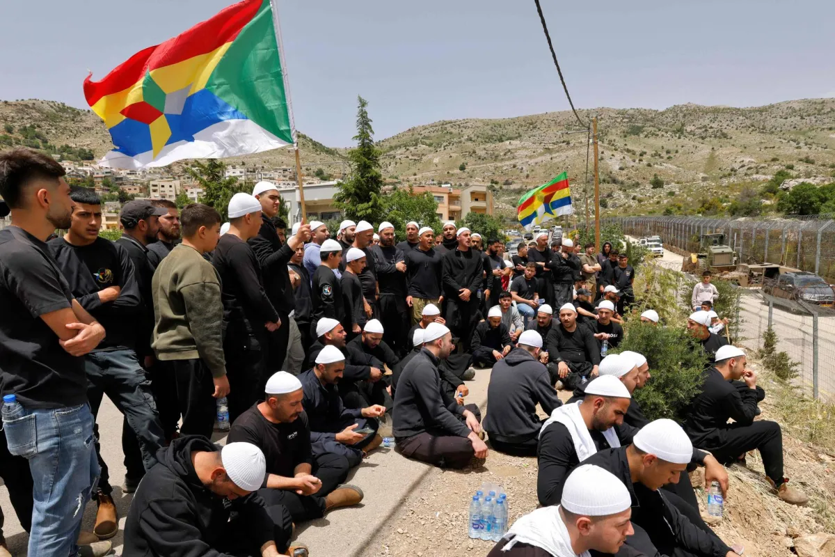 دروز يتظاهرون قرب الحدود مع سوريا تضامناً مع الدروز السوريين الأربعاء الماضي (أ.ف.ب)
