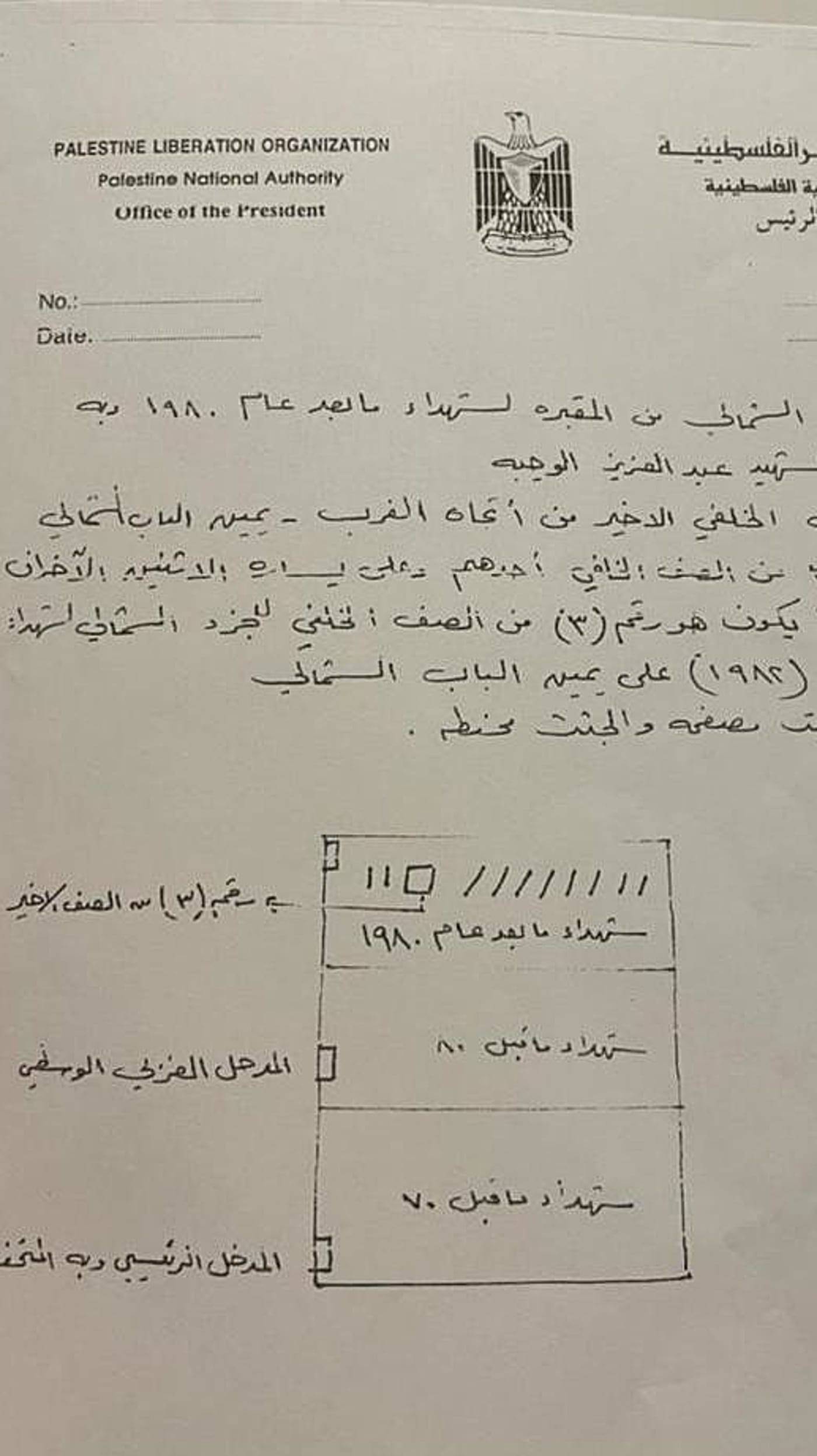 وثيقة نشرها موقع «واللا» ادّعى مصدر إسرائيلي أنها بيد عرفات وتشير إلى مواقع دفن في مخيم اليرموك بدمشق