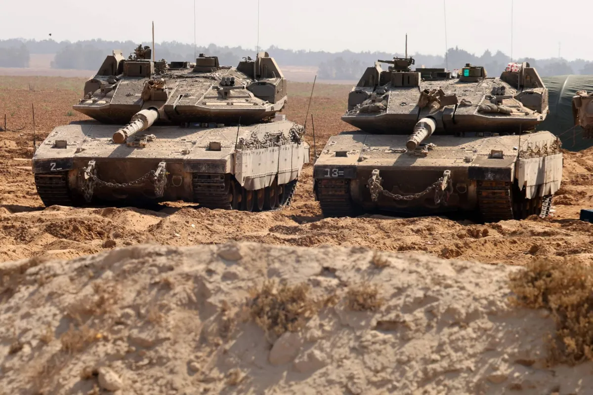 دبابات الجيش الإسرائيلي تتمركز على الحدود بين إسرائيل وقطاع غزة (أ.ف.ب)