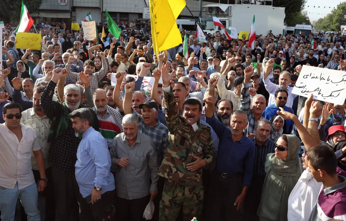 مظاهرة مناهضة للولايات المتحدة وإسرائيل في طهران اليوم (إ.ب.أ)